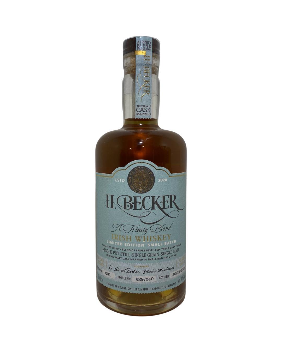 In both German and Irish on the back. Love, Friendship and Thankfulness. This is a non Chill Filtered, no added colour. This is a carefully curated blend of triple distilled single grain and sherried single malt whiskey.