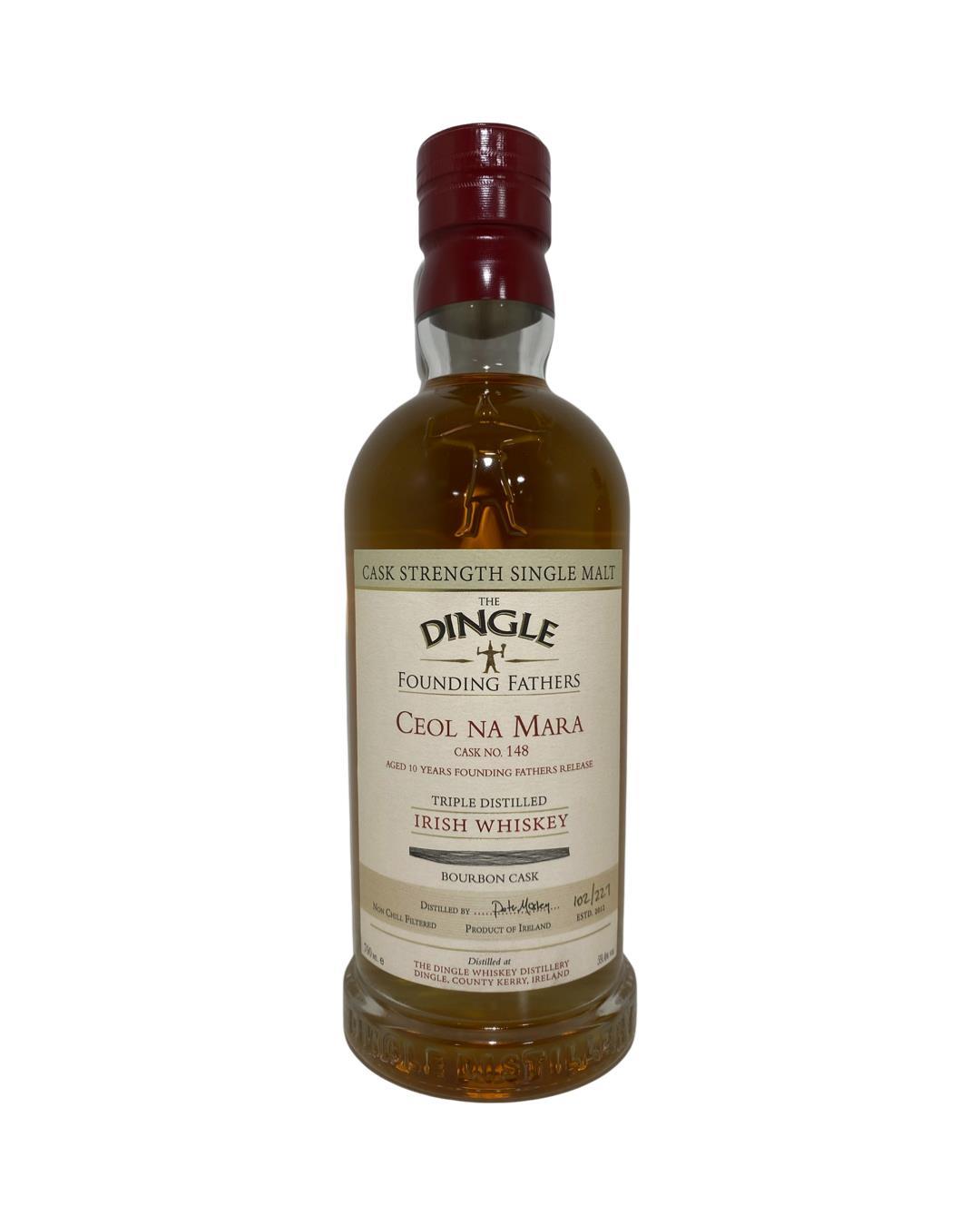Dingle Founding Father Cask No. 148 - 'Ceol Na Mara'. Cask Strength Single Malt. Aged for 10 Years, triple distilled, Bourbon Cask. Established in 2012, Dingle has quickly gained recognition for its exceptional spirits and commitment to traditional craftsmanship. The distillery focuses on producing small-batch, handcrafted whiskies that embody the rich heritage of Irish whiskey-making. Concentrating on Single Pot Still and Single Malt whiskey production the company has won many awards in the short time it has been operating, whilst garnering a multitude of followers who are keen to sample the excellent small-batch releases. Dingle has recently started to bring out some semi-permanent releases as part of the ‘Celtic Series’ with each of these celebrating the seasonal Celtic festivals such as Samhain, La le Bride and Bealtaine