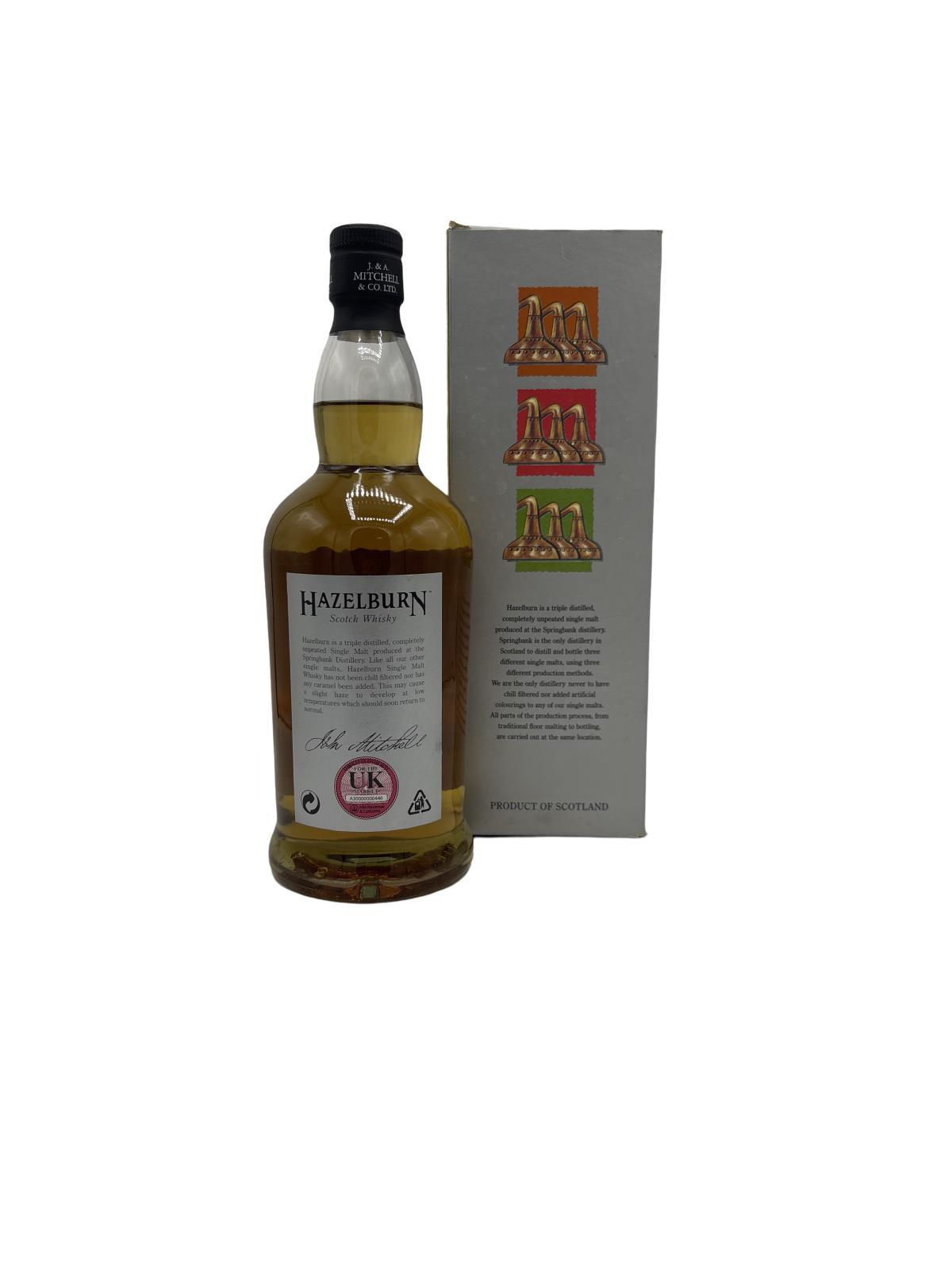 Now discontinued, this triple distilled, unpeated 8-Year-Old single malt was distilled at the Springbank distillery and bottled under the Hazelburn name. Bottled in the 2000's and comes with original carton.
