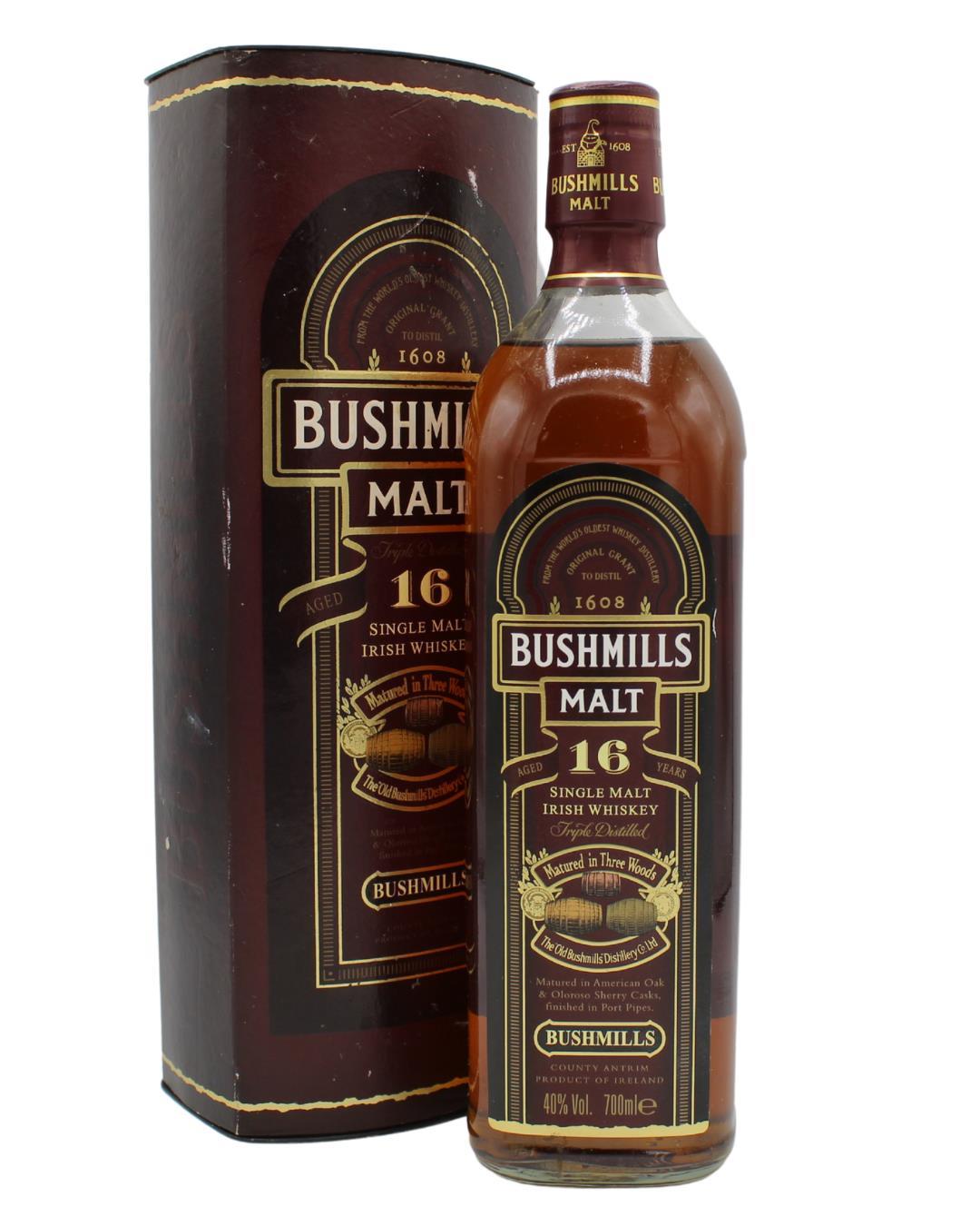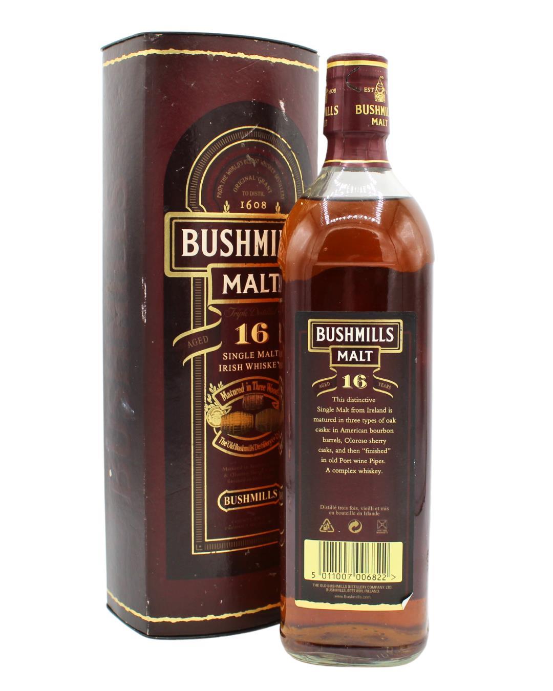 An old release of Bushmills 16. Matured in a combination of Oloroso Sherry and Bourbon casks, this 16-Year-Old Single Malt is then finished in Port pipes, adding depth and richness to its character. The result is a beautifully balanced whiskey with layers of dried fruit, nuts, and subtle spice, complemented by the sweetness and complexity imparted by the Port finish.