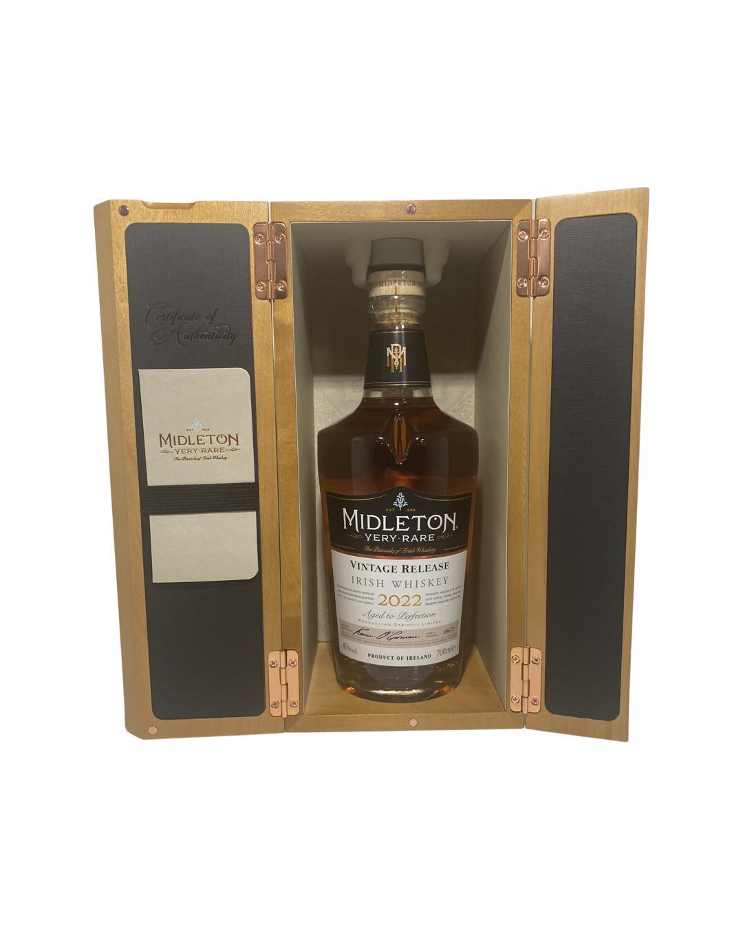 The 2022 edition to Ireland's most premium and beloved whiskey series; Midleton Very Rare. This is the 39th installment and the first release under Kevin O' Gorman appointed Master Distiller of the Midleton Distillery in 2020. Both the bottle and gift box are in very good condition, certificate and distillery invite are also included. Bottle number 18672