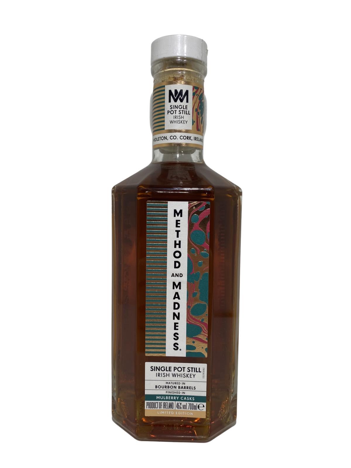 A limited edition release from the ever adventurous team at Method & Madness Method. This Single Pot Still Irish Whiskey has been initially matured in ex-Bourbon barrels, imparting flavours of “malt and biscuit”, before being finished in Mulberry cask, imparting delightful vanilla goodness.