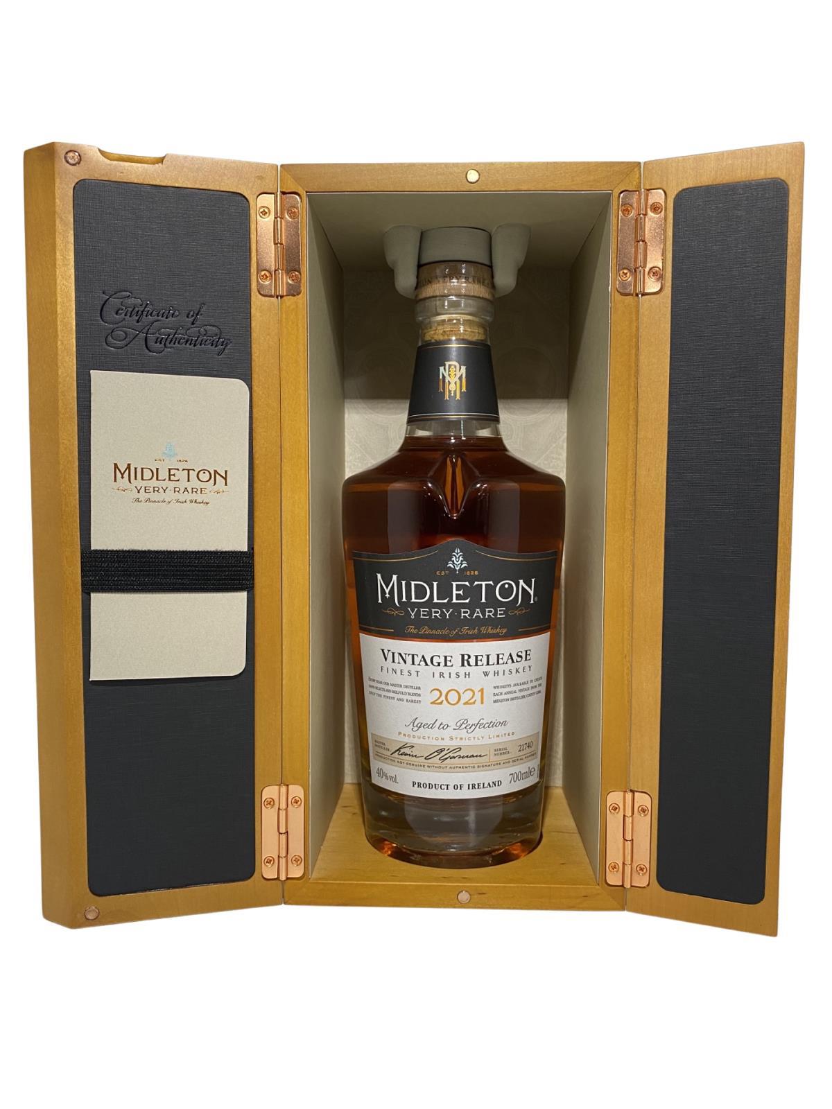 The 2021 edition to Ireland's most premium and beloved whiskey series; Midleton Very Rare. This is the 38th installment and the first release under Kevin O' Gorman appointed Master Distiller of the Midleton Distillery in 2020. Both the bottle and gift box are in very good condition, certificate and distillery invite are also included. Bottle number 21740