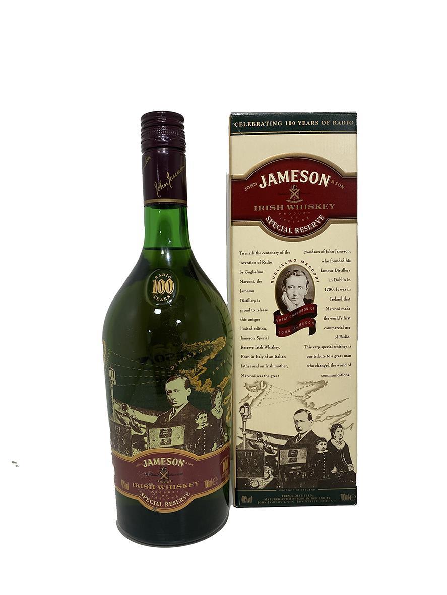 This Jameson Marconi – 100 Years of Radio bottle is a special commemorative bottle to celebrate Guglielmo Marconi, Italian inventor of the Radio. This is no surprise considering that was actually a member of the Jameson family. His mother was Annie Jameson, making him a great-grandson of the distillery founder, John Jameson. The version also saw the earliest use of virgin oak casks by IDL. Seen as a direct predecessor of the later fan favourite, Jameson Gold.