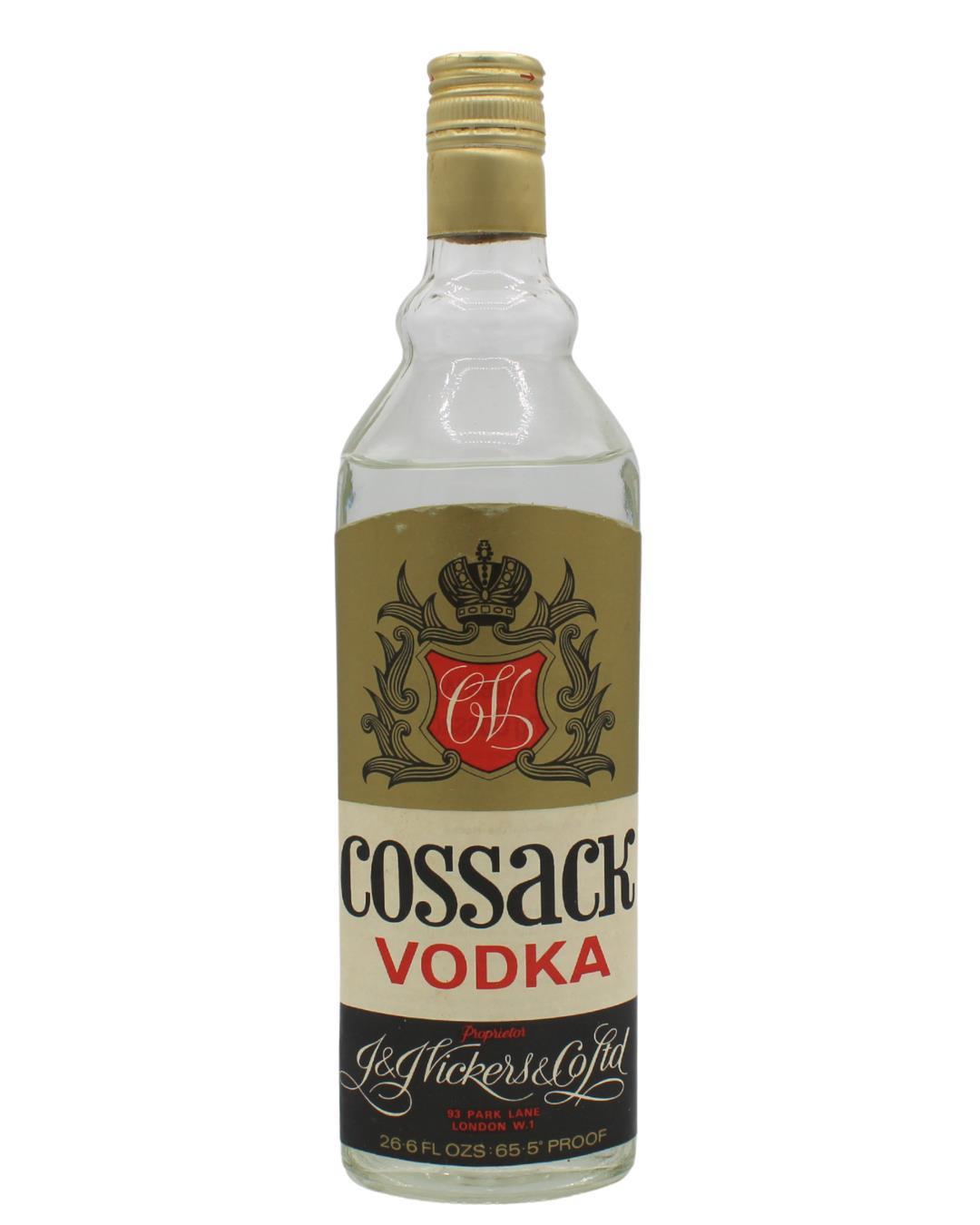 A bottle of Cossack Vodka, bottled in the 1970s. This vintage item comes without a box.