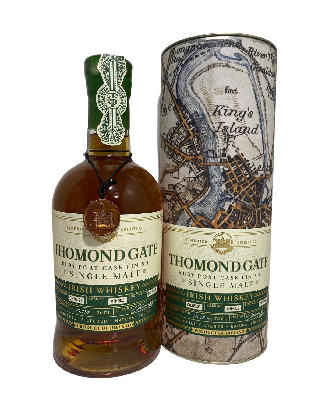 Having followed the Irish Brigade to France, his service in the French Army was cut short. He left for Portugal known as Miguel Hogan, his renowned night-time manoeuvres, perfected in the defence of Limerick, were quickly put to good use. In memory of Miguel Hogan and the blood he shed for Portugal, Thomond Gate sourced a Single Malt Whiskey, which has been finished in a Ruby Port Cask. A tribute to his rebellious spirit, which found hope and peace in his adopted home and with a Portuguese marriage. Both the bottle and gift tube are in great condition