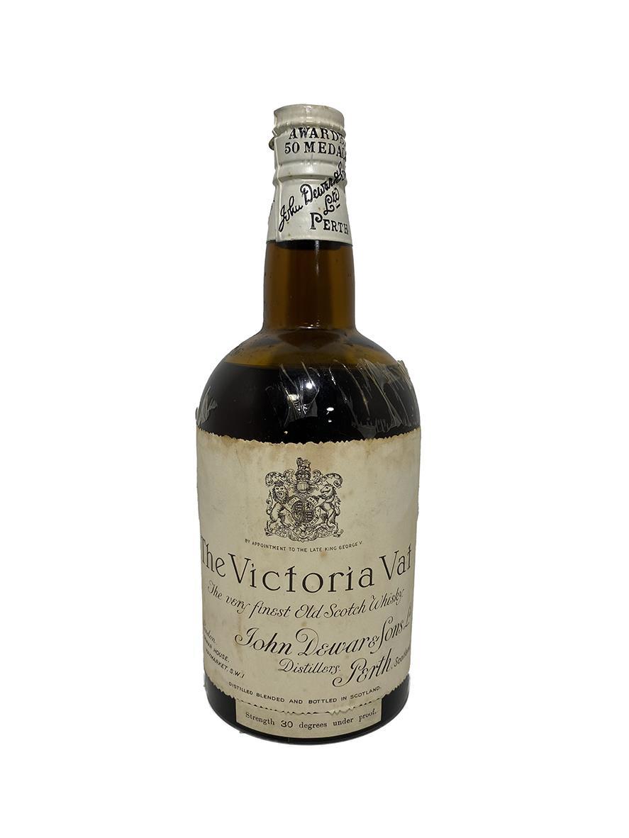 This is a Very old bottling of the Victoria Vat by Dewars. Presumed to be from the 1950s/60s. The bottle states 30 degrees under proof which looking back on old labelings and proofs would be around 40% in todays labeling. The bottle has some plastic clinging to it on the back which can be seen in the photo.