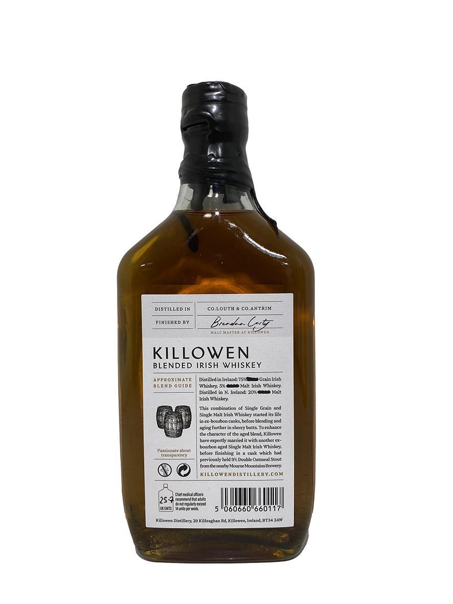 The single grain and single malt whiskies are initially matured in ex-bourbon barrels before being blended together and then spending some time in sherry casks. Then this is married with another ex-bourbon single malt before a final finish in the wood of Brendan’s choice.Killowen has used ex-Dark Rum, ex-Txakolina wine, ex-Tequila cask, an ex-Islay cask and ex-Pinot Noir with a Stout Cask finish and a Virgin Hungarian oak cask to round out the series.
