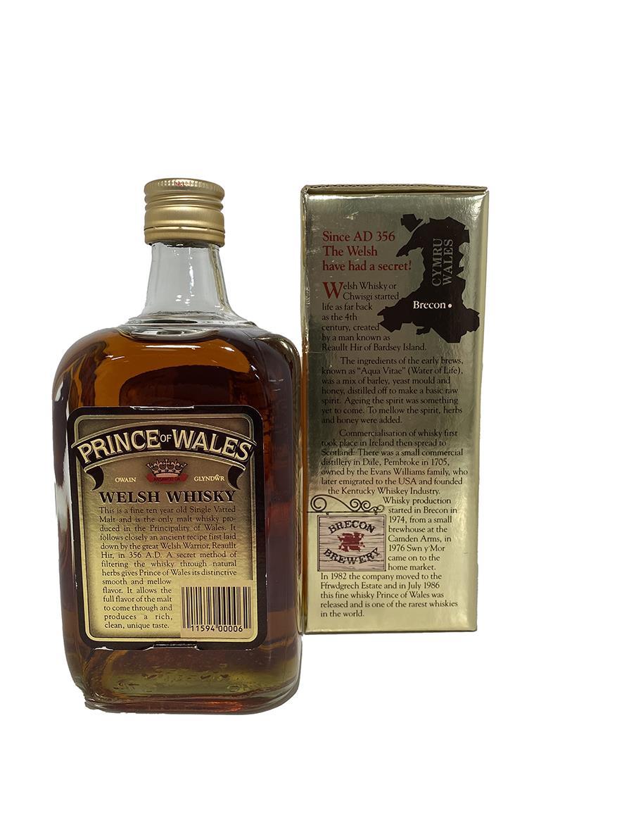 This 1980s edition of Prince of Wales 10 Year Old, which claimed to be a "Single Vatted Malt Welsh Whisky" on the label, will grab the attention of many-a-collector. The original presentation box is included.