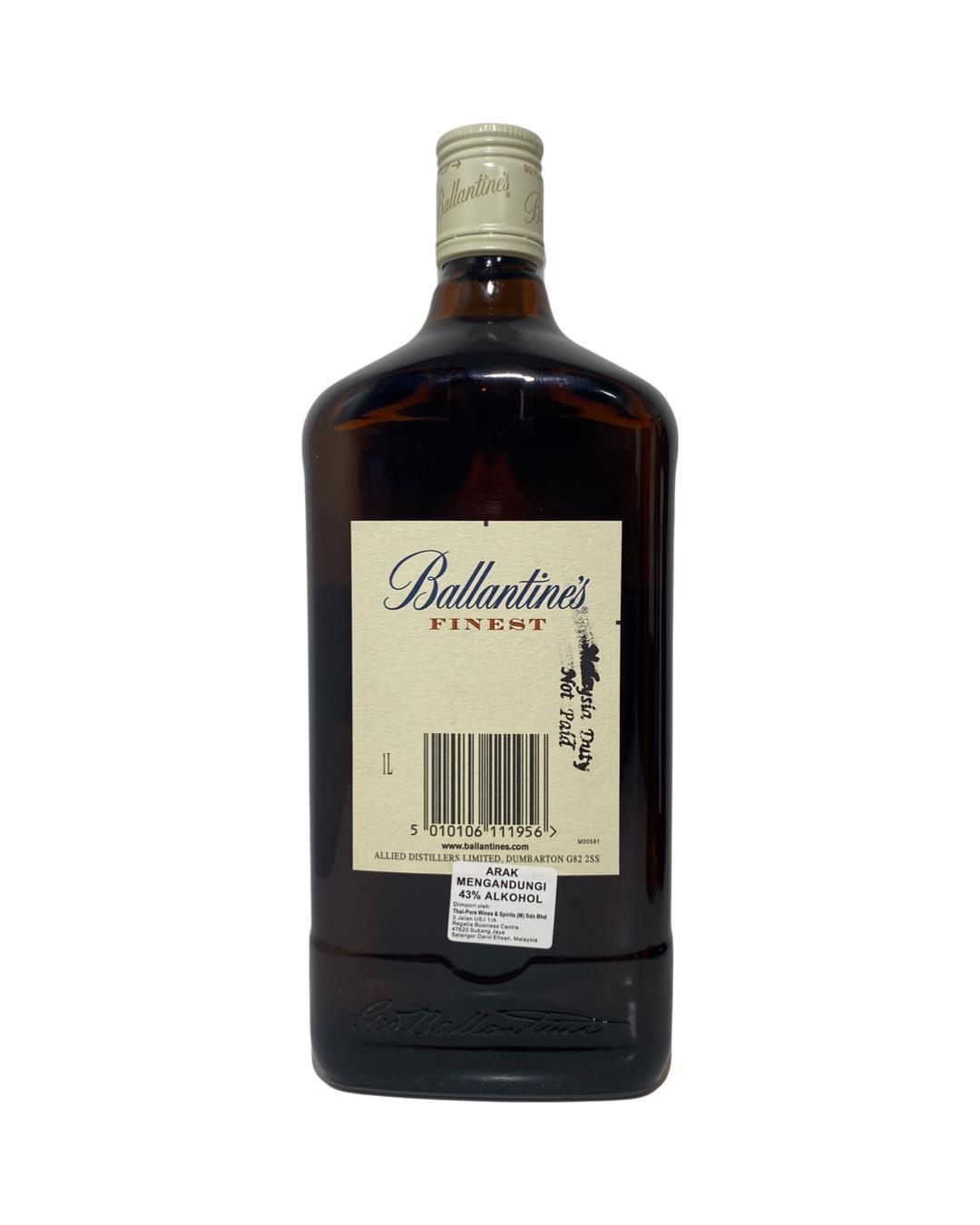 Made for Export. The ABV of this bottle is listed as 43%, A 1 Litre bottle of this popular blend. Comprising of a complex mix of over 50 different malt whiskies and four different grain whiskies. Ballantines' main malt components are Miltonduff and Glenburgie.