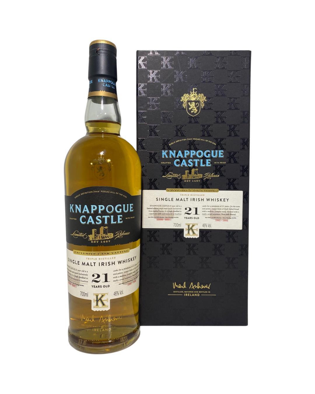 Knappogue 21 is a limited-edition single malt Irish whiskey, with only 1,200 bottles produced. First put into casks in 1994 and 1996, this marriage of two single malts - aged 21 and 23 years - is made exclusively from malted barley. Distilled in copper pot stills and matured in B1 bourbon casks, this expression is nonchill filtered and bottled at 92 proof.