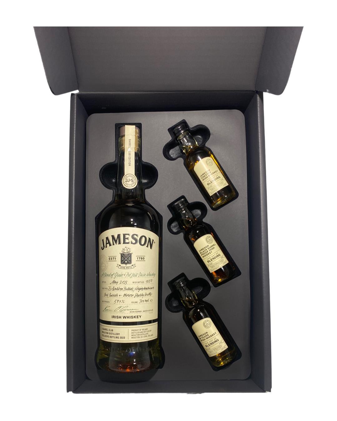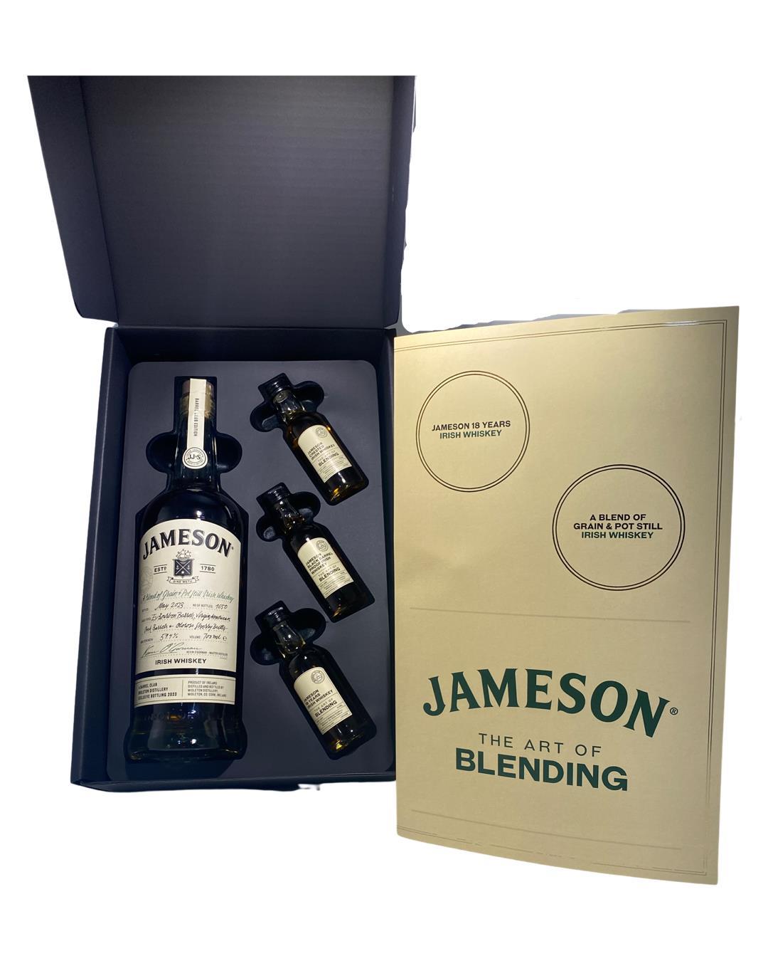 A limited edition Jameson blend of Single Pot Still and Grain whiskey bottling which has been matured in Virgin Irsh, European & American Oak Casks, Bourbon & Sherry. From the Midleton distillery barrel club. This includes 3 samples. Jameson Crested, Jameson Black Barrel Proof, Jameson 18 Years,