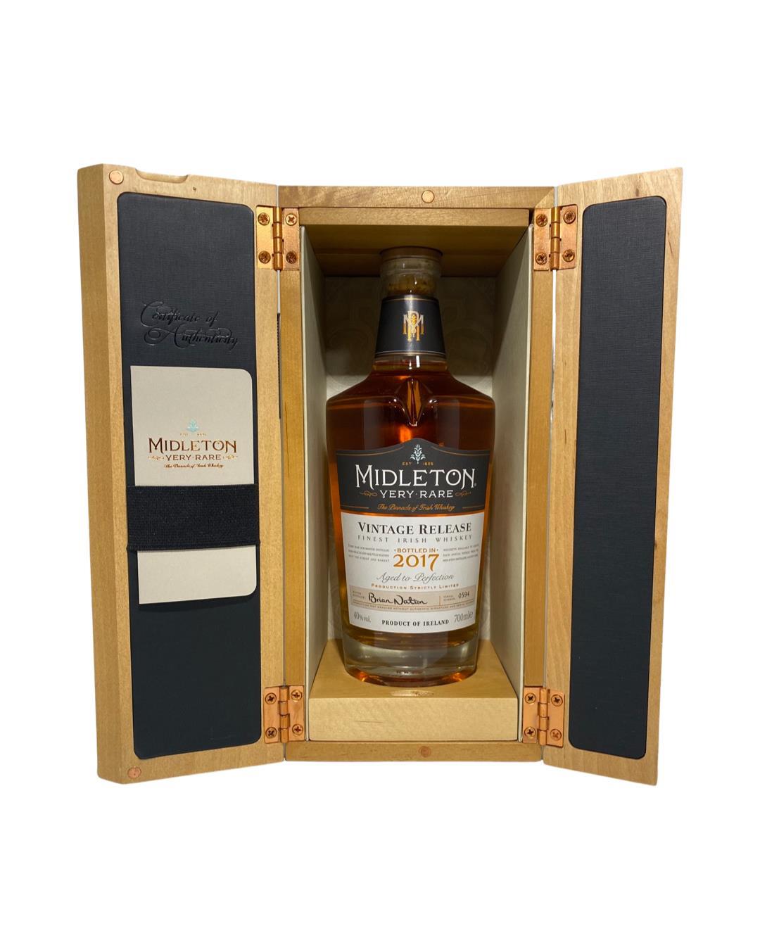 The Midleton Very Rare 2017, is a bottling brought out by the Midleton Distillery in Co. Cork. The ‘Midleton Very Rare’ range was launched in 1984 and a new vintage has been released every year since then. Barry Crockett started off the ‘Midleton Very Rare’ range while he was the Master Distiller of Midleton Distillery, in 2013 Barry Crockett retired from his role of Master Distiller. From 2014 onwards Brian Nation has been creating the ‘Midleton Very Rare’ range, maintaining its role as standard-bearer and pinnacle of Irish Whiskey. The bottle and gift box in great condition also include the cert and distillery invite. New bottle style and label.