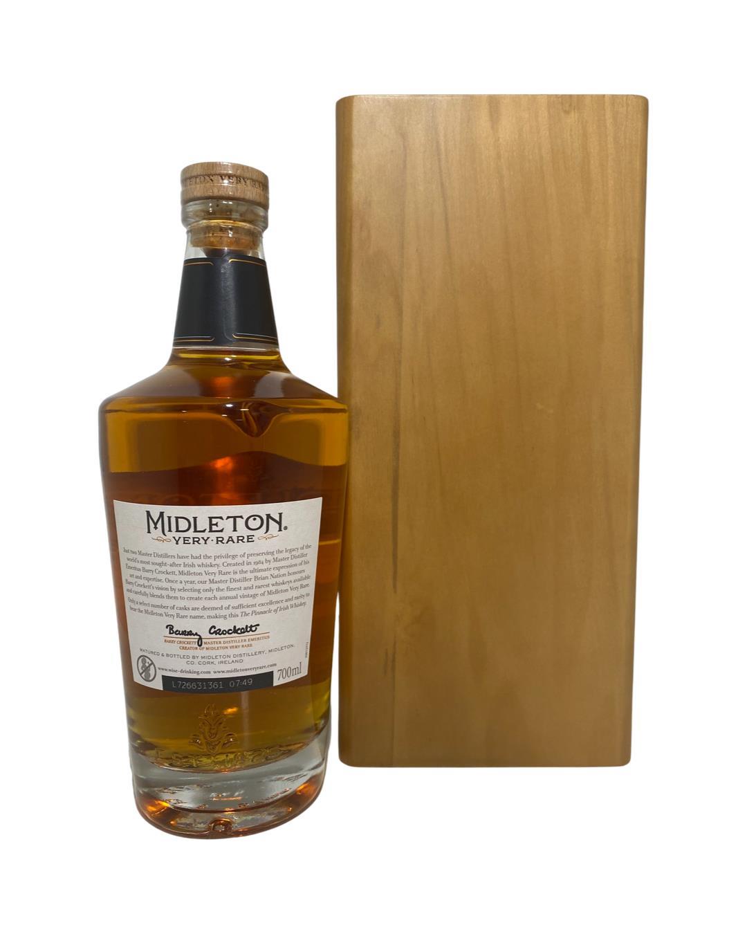 The Midleton Very Rare 2017, is a bottling brought out by the Midleton Distillery in Co. Cork. The ‘Midleton Very Rare’ range was launched in 1984 and a new vintage has been released every year since then. Barry Crockett started off the ‘Midleton Very Rare’ range while he was the Master Distiller of Midleton Distillery, in 2013 Barry Crockett retired from his role of Master Distiller. From 2014 onwards Brian Nation has been creating the ‘Midleton Very Rare’ range, maintaining its role as standard-bearer and pinnacle of Irish Whiskey. The bottle and gift box in great condition also include the cert and distillery invite. New bottle style and label.