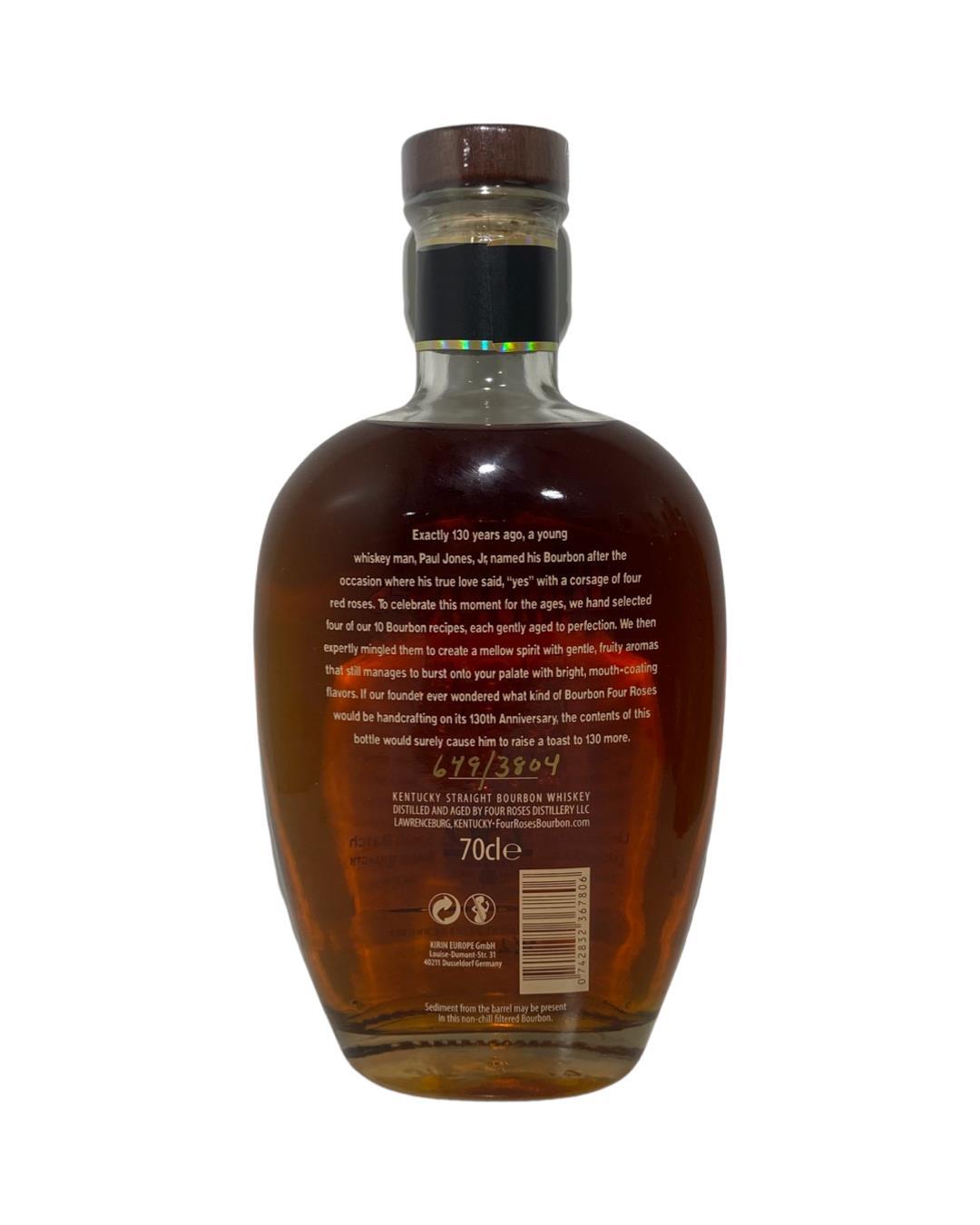 Handcrafted to commemorate the 130-year history of Four Roses this is their 130th Anniversary Limited Edition Small Batch Bottled at barrel strength, Four Roses distributed just over 13,000 bottles for this release.