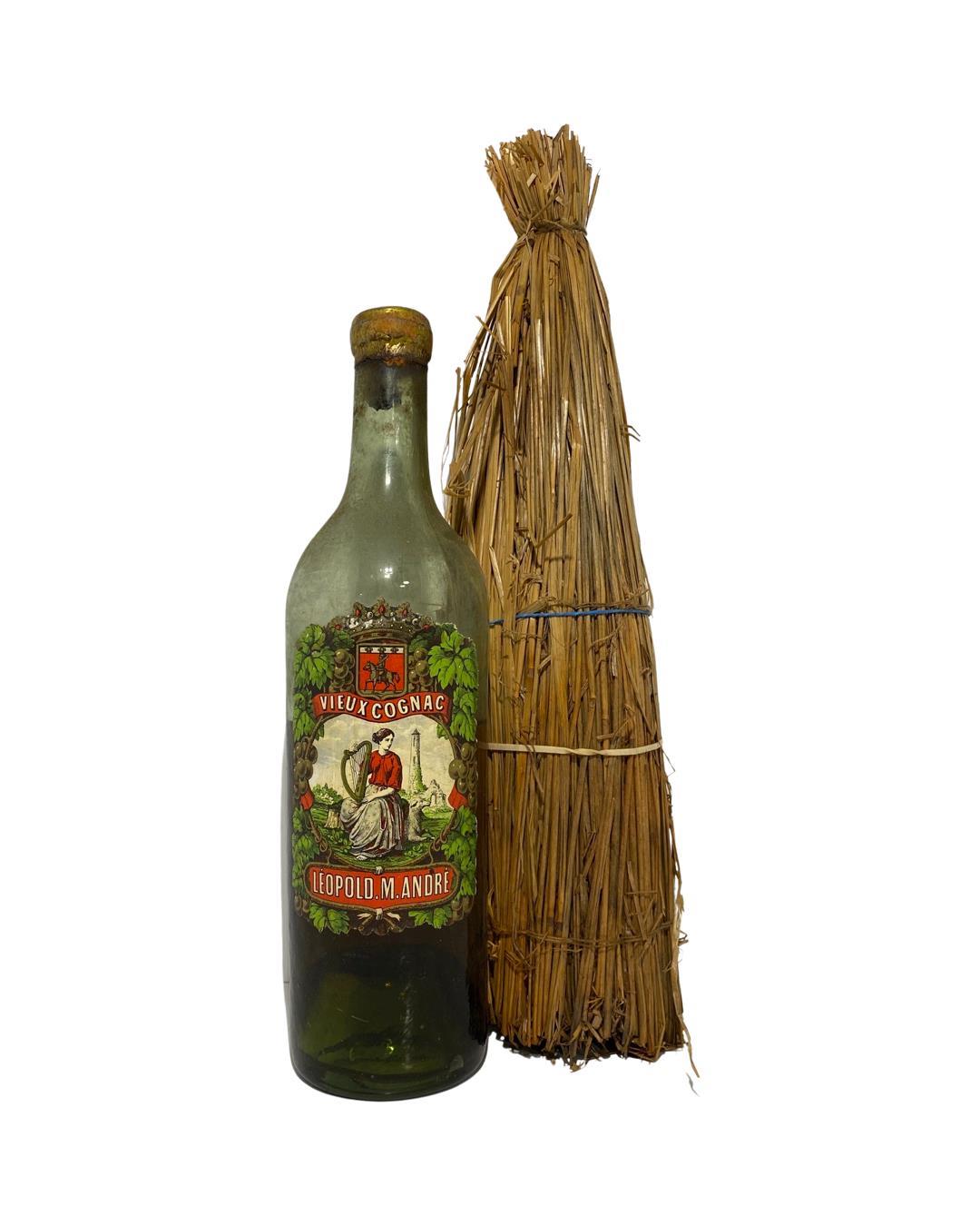 Certainly one of the older and more rare bottles we have seen come through the auction. This Vieux Cognac has seen better days with some poor ullage bu the seal is still intact. The cork appears to have withered away. The label is better on this bottle with a lady in a red top with a harp.