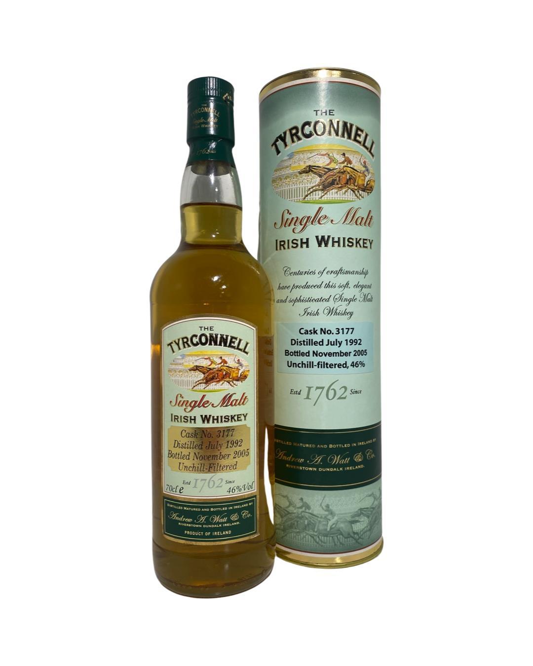 A pure pot still Irish single malt, distilled at Cooley distillery and bottled by Andrew A. Watt and Co under the old Tyrconnell distillery brand. Distilled in July 1992 and bottled in November 2005.