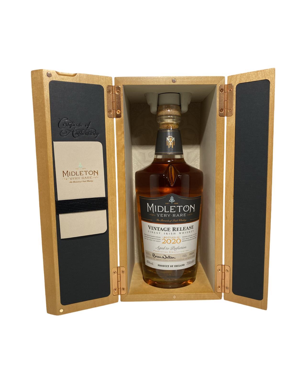 The 2020 edition to Ireland's most premium and beloved whiskey series; Midleton Very Rare. This is the 38th installment and the last release under Brian Nation appointed Master Distiller of the Midleton Distillery in 2014. Both the bottle and gift box are in very good condition, certificate and distillery invite are also included.  The Midleton Very Rare range of whiskeys is a collection of highly regarded Irish whiskeys crafted at the Midleton Distillery in County Cork, Ireland. With a reputation for excellence, these whiskeys are known for their exceptional quality, craftsmanship, and limited availability. Characterized by smoothness, complexity, and depth of flavour, Midleton Very Rare often exhibits notes of ripe fruits, honey, vanilla, spices, and oak. The component casks are typically aged for around 12-27 years but each yearly batch is unique and for this reason the whiskeys are highly collectible. To this day the Midleton Very Rare series is still regarded as the pinnacle and benchmark for ultra-premium blended Irish whiskeys.
