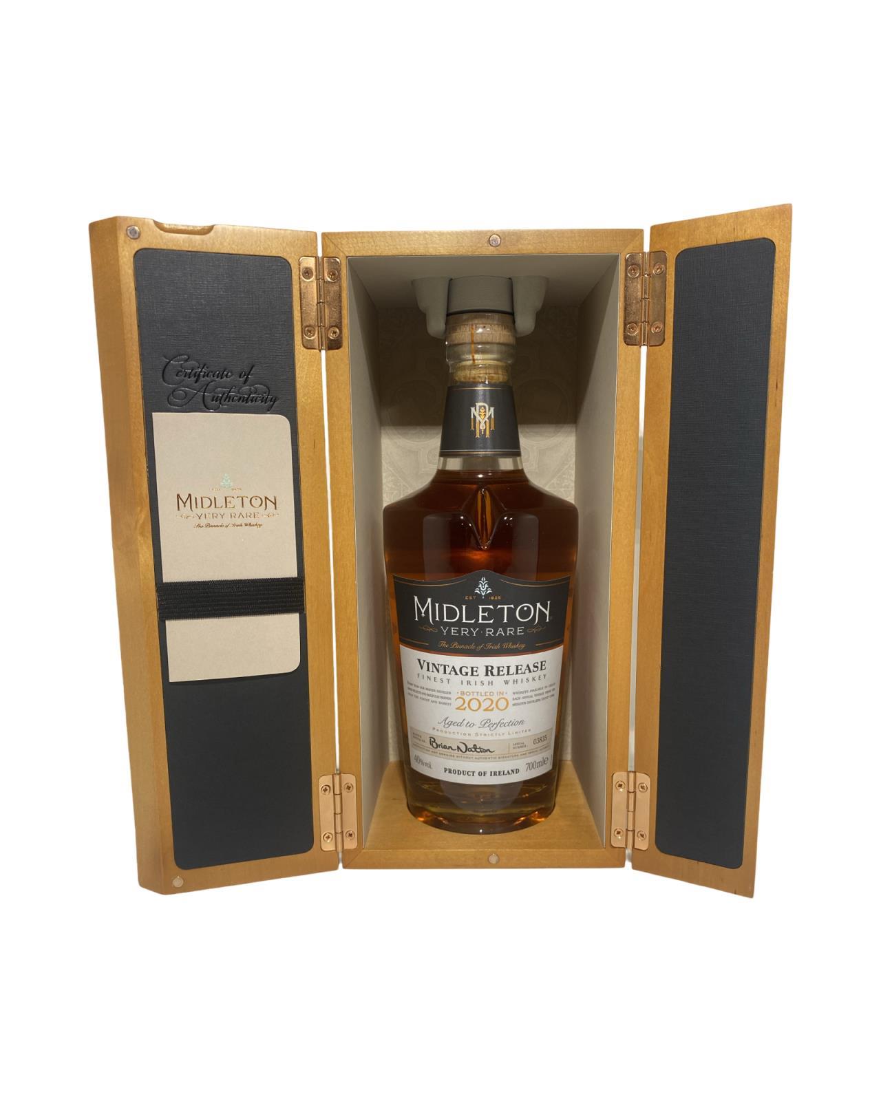 The 2020 edition to Ireland's most premium and beloved whiskey series; Midleton Very Rare. This is the 38th installment and the last release under Brian Nation appointed Master Distiller of the Midleton Distillery in 2014. Both the bottle and gift box are in very good condition, certificate and distillery invite are also included. The Midleton Very Rare range of whiskeys is a collection of highly regarded Irish whiskeys crafted at the Midleton Distillery in County Cork, Ireland. With a reputation for excellence, these whiskeys are known for their exceptional quality, craftsmanship, and limited availability. Characterized by smoothness, complexity, and depth of flavour, Midleton Very Rare often exhibits notes of ripe fruits, honey, vanilla, spices, and oak. The component casks are typically aged for around 12-27 years but each yearly batch is unique and for this reason the whiskeys are highly collectible. To this day the Midleton Very Rare series is still regarded as the pinnacle and benchmark for ultra-premium blended Irish whiskeys.