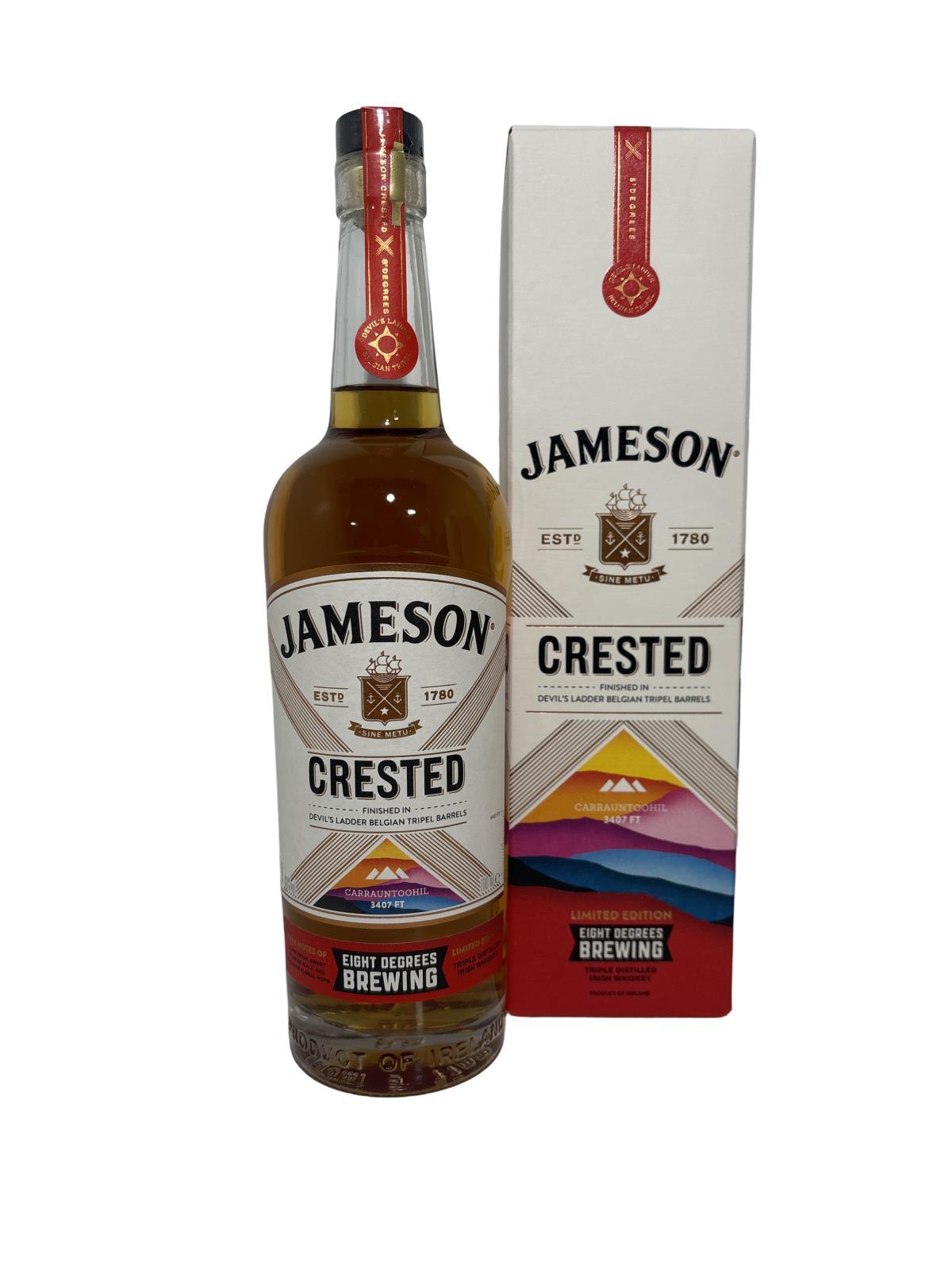 Belgian tripel meets a triple distilled whiskey in this must-try new release from Jameson! Made by maturing Jameson Crested in beer-soaked casks provided by Eight Degrees Brewing. The beer casks impart flavours of cloves, roasted malt, vanilla, and delicate floral hops, combined with its own pot still spice and sweet sherry notes. A must-try for fans of Jameson!
