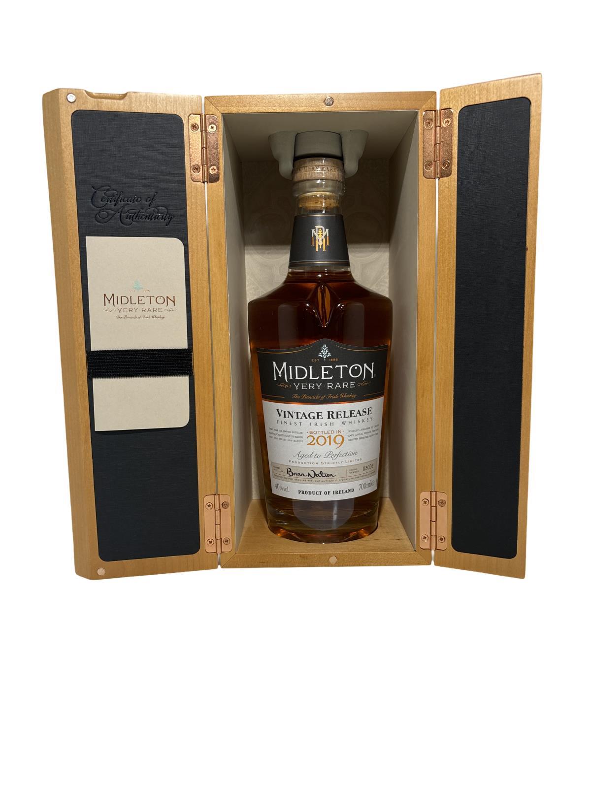 The Midleton Very Rare 2019, is a bottling brought out by the Midleton Distillery in Co. Cork. The ‘Midleton Very Rare’ range was launched in 1984 and a new vintage has been released every year since then. Barry Crockett started off the ‘Midleton Very Rare’ range while he was the Master Distiller of Midleton Distillery, in 2013 Barry Crockett retired from his role of Master Distiller. From 2014 onwards Brian Nation has been creating the ‘Midleton Very Rare’ range, maintaining its role as standard-bearer and pinnacle of Irish Whiskey. The bottle and gift box in great condition also include the cert and distillery invite.