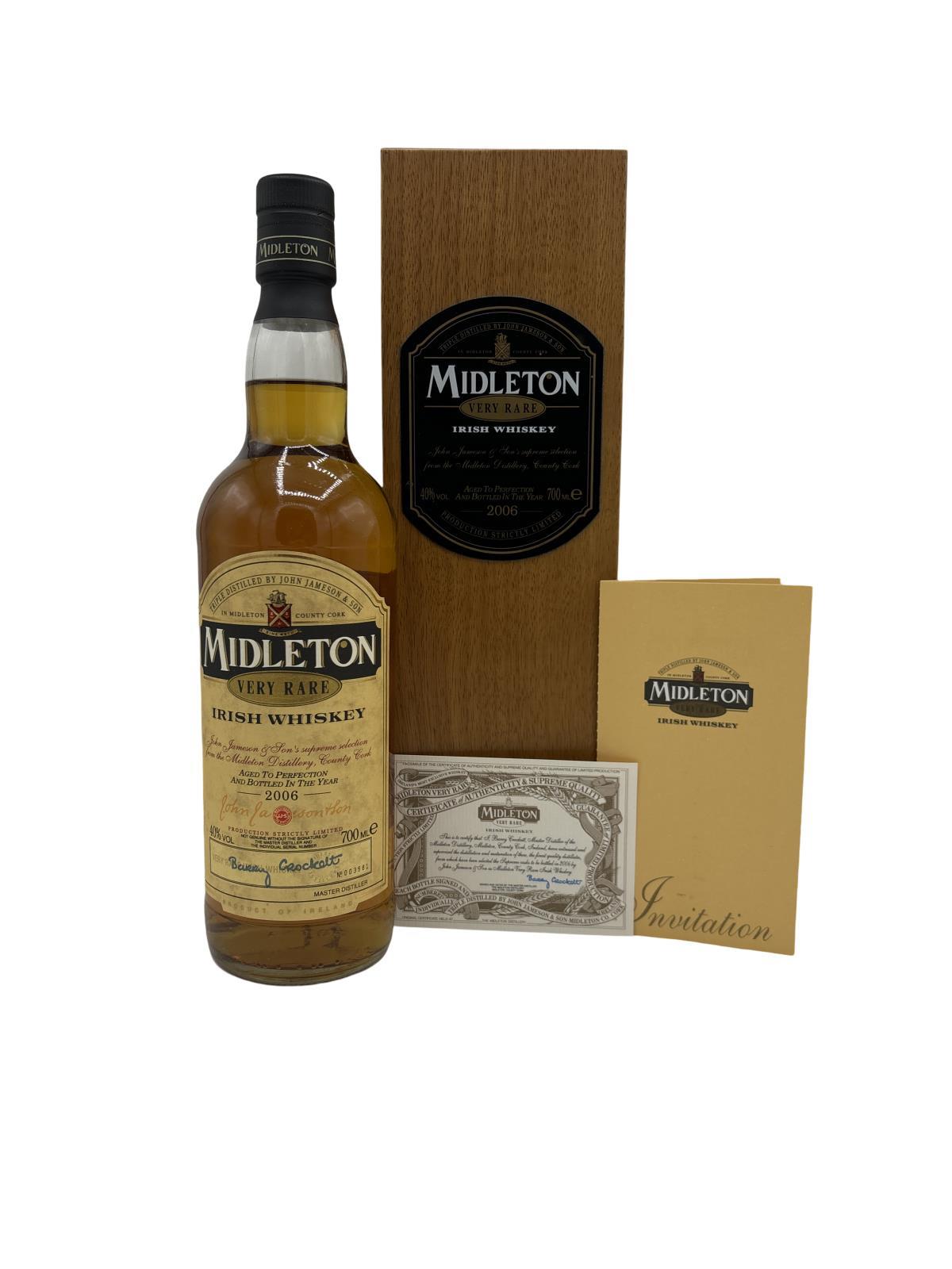 The Midleton Very Rare 2006, is a bottling brought out by the Midleton Distillery in Co. Cork. The ‘Midleton Very Rare’ range was launched in 1984 and a new vintage has been released every year since then. Barry Crockett started off the ‘Midleton Very Rare’ range while he was the Master Distiller of Midleton Distillery. The Bottle and box are in great condition. The Midleton Very Rare range of whiskeys is a collection of highly regarded Irish whiskeys crafted at the Midleton Distillery in County Cork, Ireland. With a reputation for excellence, these whiskeys are known for their exceptional quality, craftsmanship, and limited availability. Characterized by smoothness, complexity, and depth of flavour, Midleton Very Rare often exhibits notes of ripe fruits, honey, vanilla, spices, and oak. The component casks are typically aged for around 12-27 years but each yearly batch is unique and for this reason the whiskeys are highly collectible. To this day the Midleton Very Rare series is still regarded as the pinnacle and benchmark for ultra-premium blended Irish whiskeys.