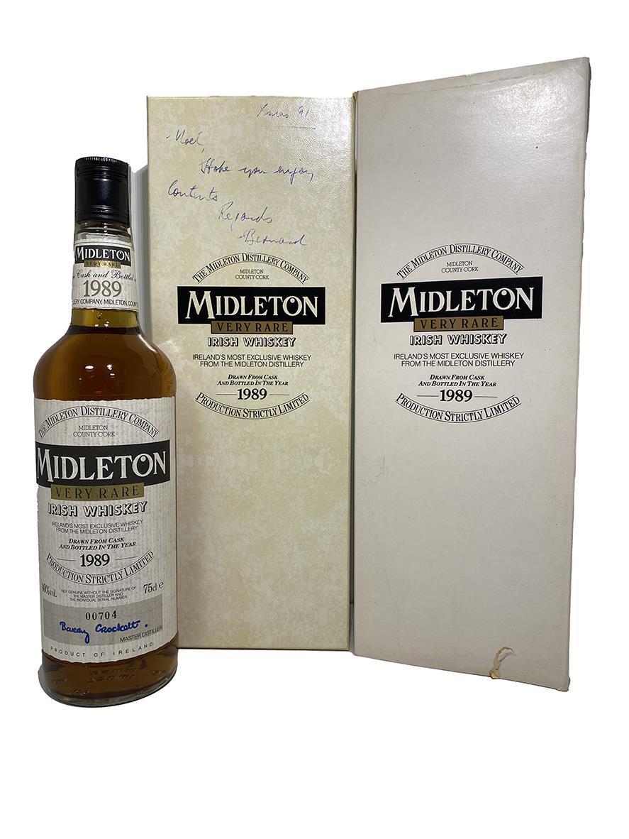 The Midleton Very Rare 1989, is a bottling brought out by the Midleton Distillery in Co. Cork. The ‘Midleton Very Rare’ range was launched in 1984 and a new vintage has been released every year since then. Barry Crockett started off the ‘Midleton Very Rare’ range while he was the Master Distiller of Midleton Distillery,the highly sought after Midleton Very Rare 1989. The bottle is in excellent condition and comes with the original distillery invite and certificate. Unfortunatly the outer box has writing on it which can be seen in the photos. Bottle Number 704.