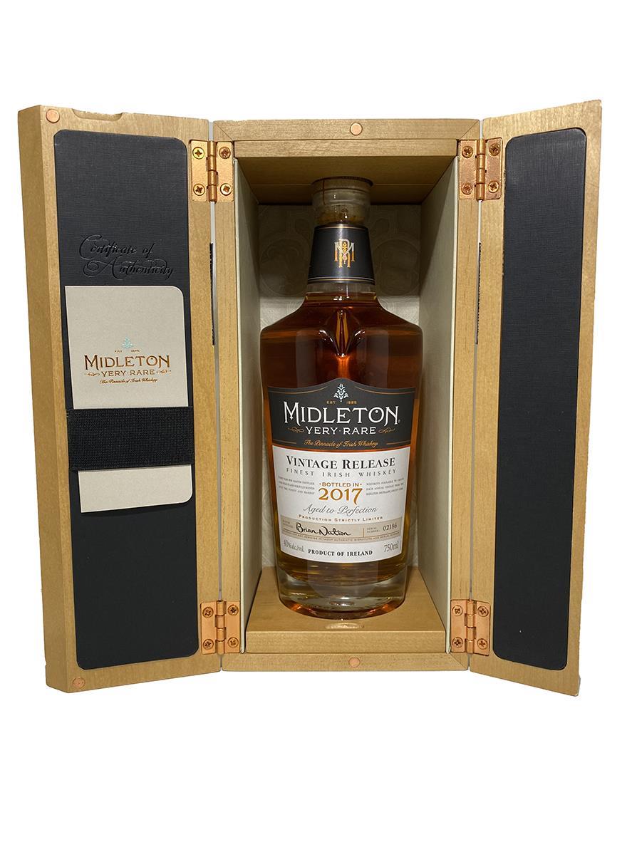 The Midleton Very Rare 2017, is a bottling brought out by the Midleton Distillery in Co. Cork. The ‘Midleton Very Rare’ range was launched in 1984 and a new vintage has been released every year since then. Barry Crockett started off the ‘Midleton Very Rare’ range while he was the Master Distiller of Midleton Distillery, in 2013 Barry Crockett retired from his role of Master Distiller. From 2014 onwards Brian Nation has been creating the ‘Midleton Very Rare’ range, maintaining its role as standard-bearer and pinnacle of Irish Whiskey. The bottle and gift box in great condition also include the cert and distillery invite. New bottle style and label. Bottle number 2186.