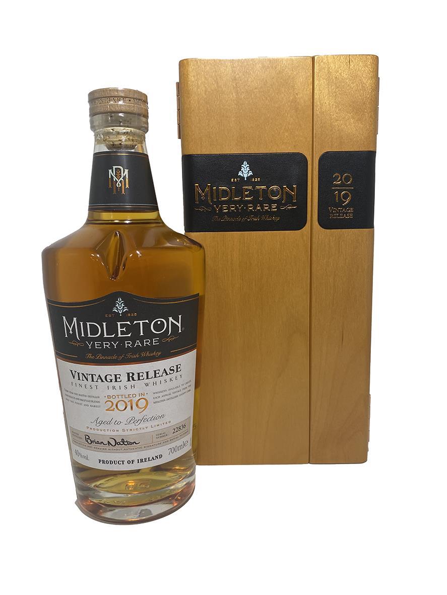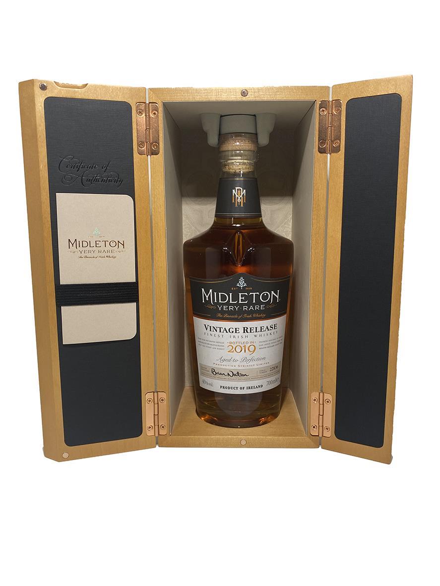 The Midleton Very Rare 2019, is a bottling brought out by the Midleton Distillery in Co. Cork. The ‘Midleton Very Rare’ range was launched in 1984 and a new vintage has been released every year since then. Barry Crockett started off the ‘Midleton Very Rare’ range while he was the Master Distiller of Midleton Distillery, in 2013 Barry Crockett retired from his role of Master Distiller. From 2014 onwards Brian Nation has been creating the ‘Midleton Very Rare’ range, maintaining its role as standard-bearer and pinnacle of Irish Whiskey. The bottle and gift box in great condition also include the cert and distillery invite. Bottle number 22836