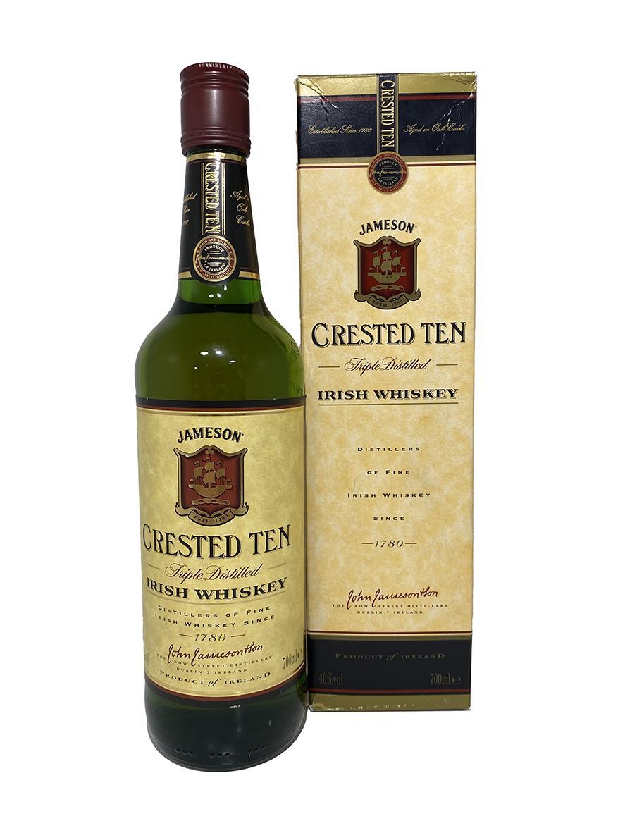 This is the older version of Jameson Crested Ten (now relabelled as simply 'Crested').Its been said amongst the whiskey community that thi is a  far better example than the standard Jameson, it has just a bit more flavour and complexity, meaning it is a little easier to drink straight up without a mixer or ice! The blend composition is very similar to the regular Jameson but has a little more ageing. Some extra use of sherry casks also adds some nice weight and spicy fruitiness.