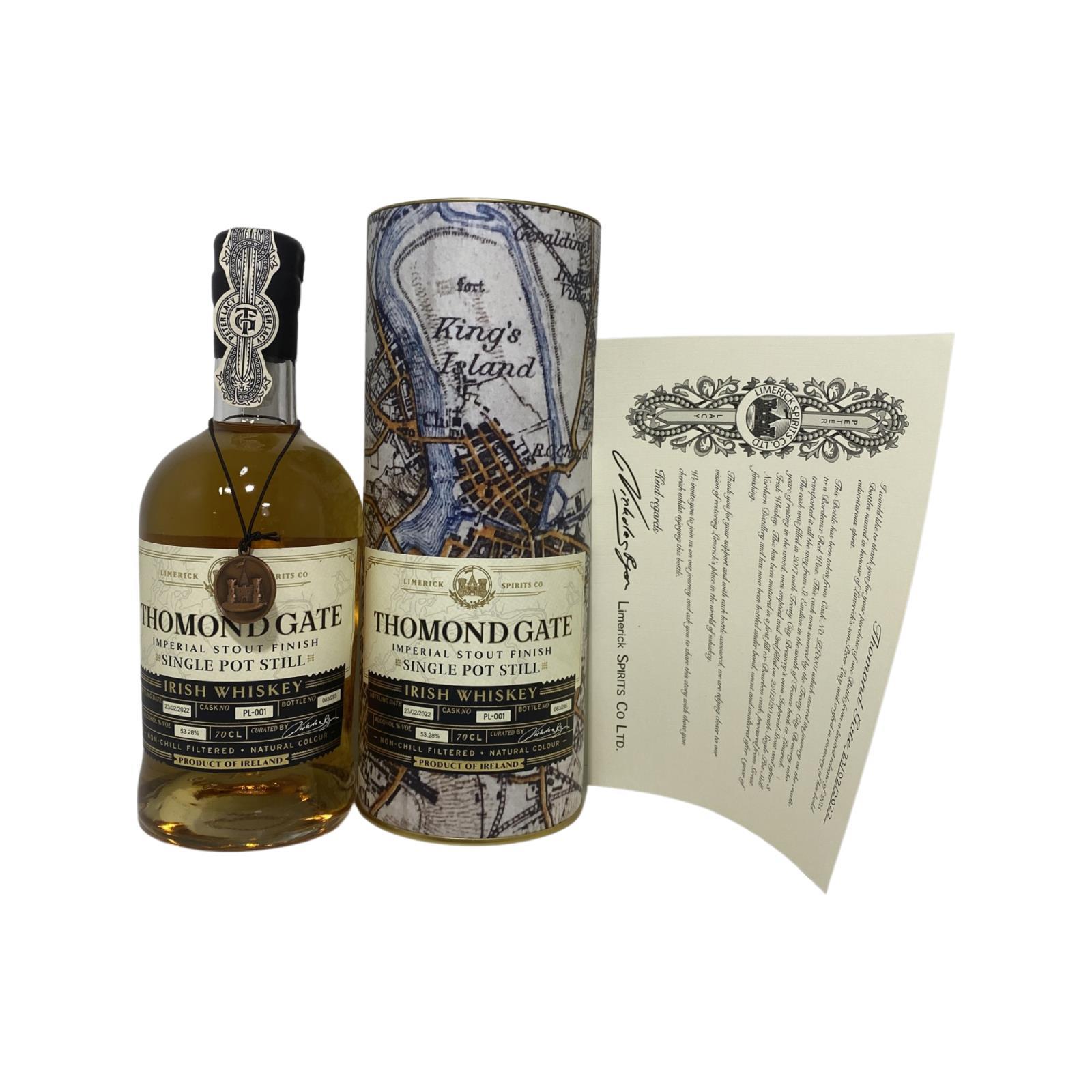 This is the second release of the Peter Lacy series from Thomond Gate Whiskey as part of its ‘Departed Spirits of Limerick’ series pays homage to a prolific military General known as Peter Lacy, of Killeedy, Co Limerick. In memory of Peter Lacy, Thomond Gate Whiskey has sourced a traditional Pot Still whiskey, which has been finished in an Imperial Stout cask from Treaty City Brewery. It’s an intensely flavoured, dark, full-bodied beer with lots of chocolate, coffee and dried dark fruits, which perfectly compliments the characteristics of Irish Pot Still whiskey. This is a limited release of 285 bottles at cask strength (53.28%) with non-chill filtration and a natural colour. Each bottle has been hand filled, labelled and adorned with a unique coin engraved with the individual bottle number.
