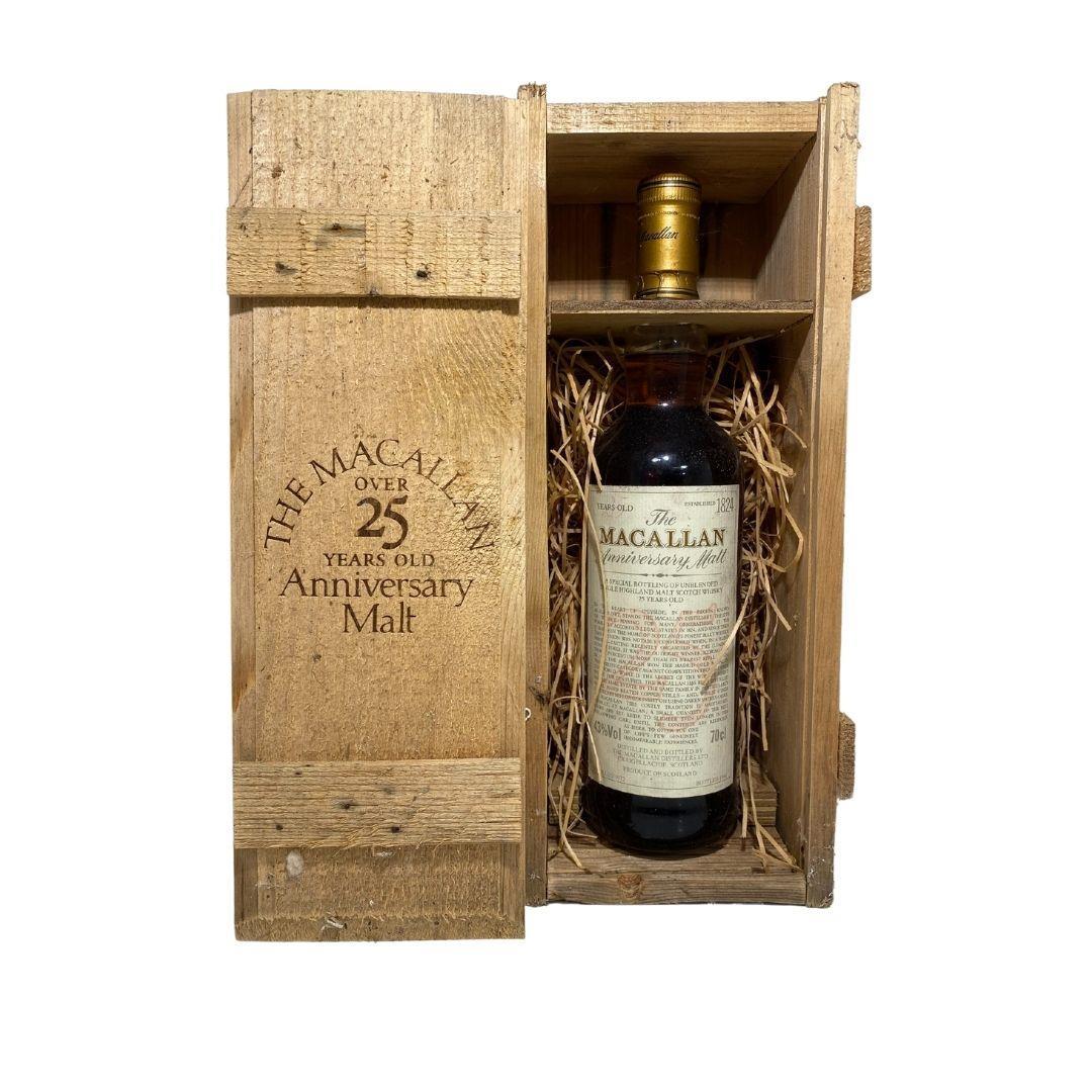 This rare 25 year old Speyside single malt was distilled at The Macallan in 1972 and bottled for their prestigious Anniversary Malt series in 1998.Comes in good condition with a beautiful wooden presentation box, this was bottled for the UK market and would be a great addition to any collection.