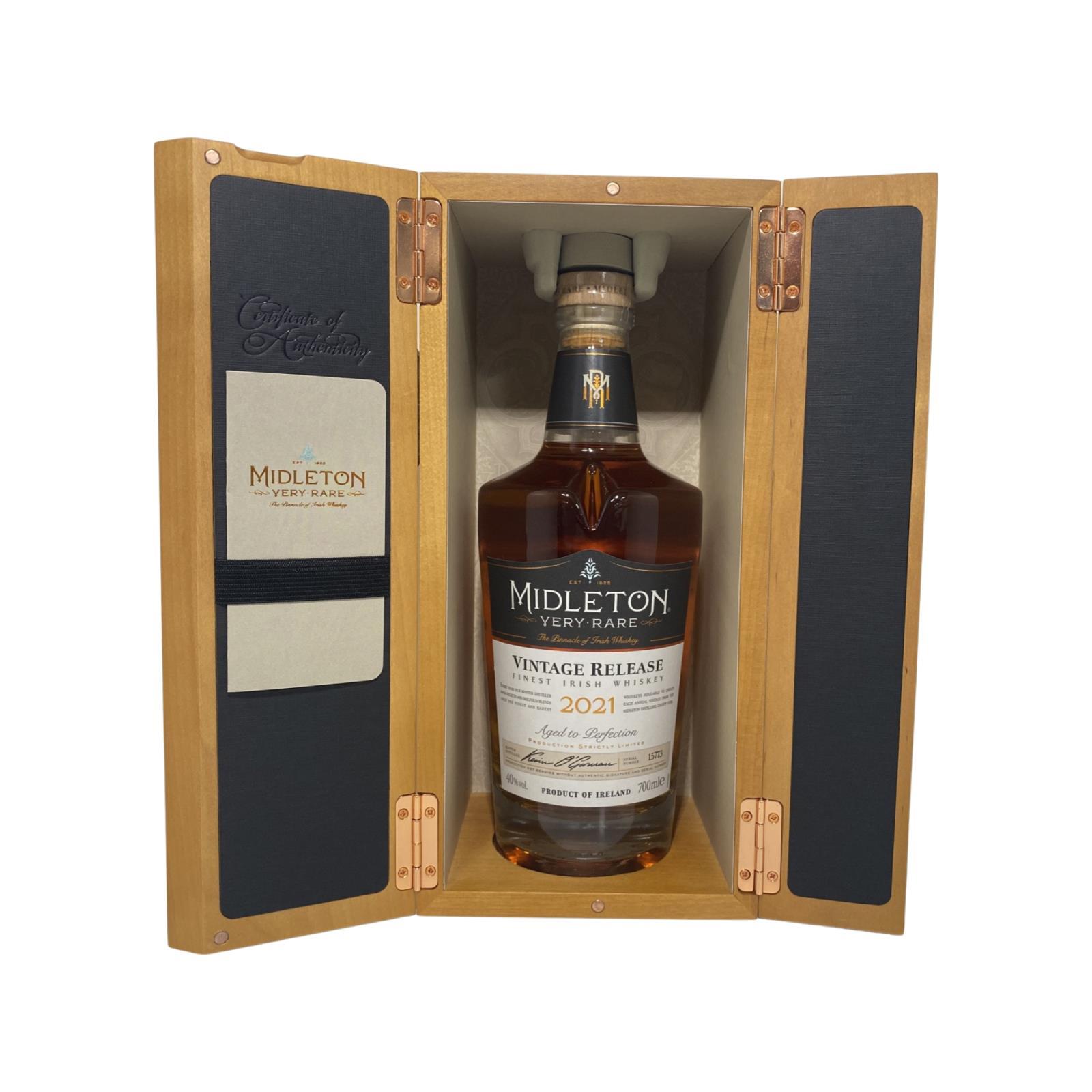 The 2021 edition to Ireland's most premium and beloved whiskey series; Midleton Very Rare. This is the 38th installment and the first release under Kevin O' Gorman appointed Master Distiller of the Midleton Distillery in 2020. Both the bottle and gift box are in very good condition, certificate and distillery invite are also included. Bottle number 15773