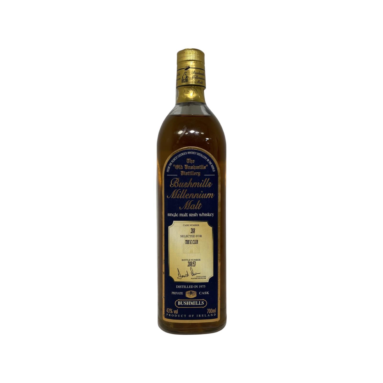 This bottle of Bushmills Millennium Single Malt was bottled around the Millennium and what resulted was the longest aged Bushmills whiskey available then, with this exceptional cask being 288.Bushmills Millennium Malt is a series of single cask bottlings from whiskey distilled in 1975 and matured in ex-Bourbon barrels. This unique Bushmills Millennium Malt has come straight from the cask, pure and unfiltered, following the ancient tradition that is whiskey making in Ireland. The addition of water, which flows over the basalt rock from St. Columbs Rill, to bring it to its bottled strength, is the only change Bushmills have made to your whiskey since it began the slow gentle process of maturation in your cask, back in 1975.