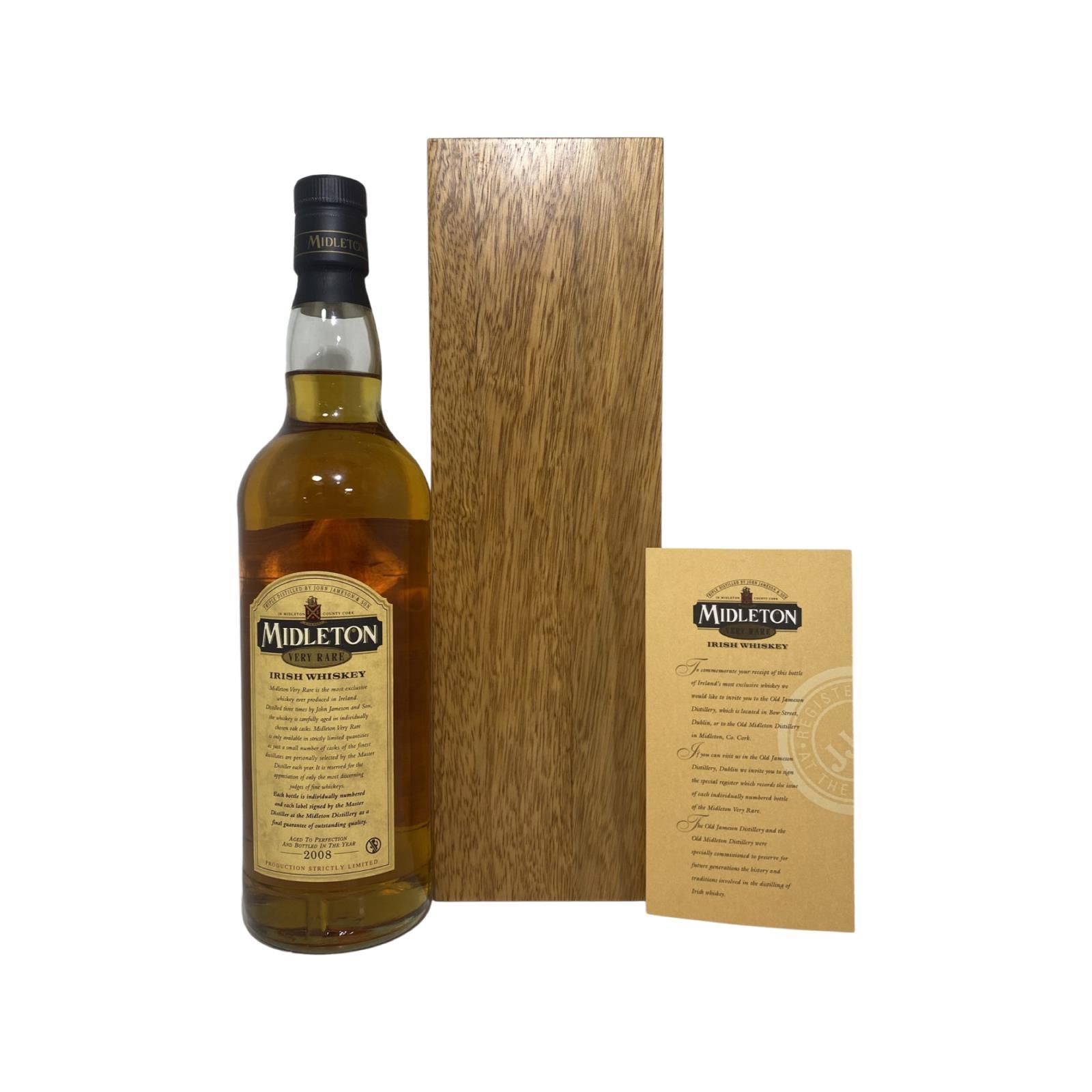 The Midleton Very Rare 2008, is a bottling brought out by the Midleton Distillery in Co. Cork. The ‘Midleton Very Rare’ range was launched in 1984 and a new vintage has been released every year since then. Barry Crockett started off the ‘Midleton Very Rare’ range while he was the Master Distiller of Midleton Distillery.The Bottle and Box are in Great condition.