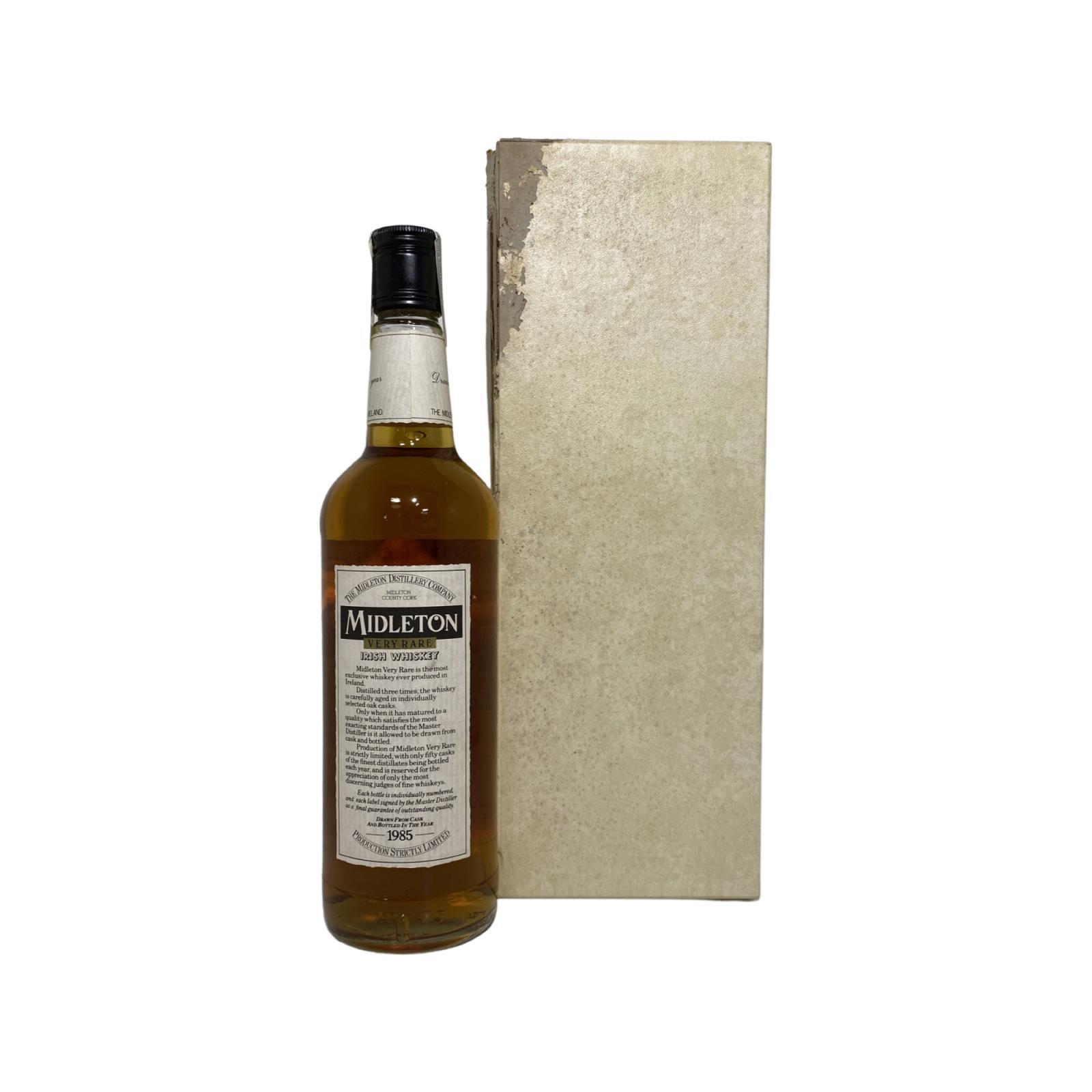 A rare and collectable bottle of Midleton Rare from the 1985 vintage when the master distiller was Barry Crockett. The Midleton Very Rare 1985 is the second edition of the Very Rare Series that began in 1984 whereby a new vintage is released every year. Box damaged as can be seen in the photo.