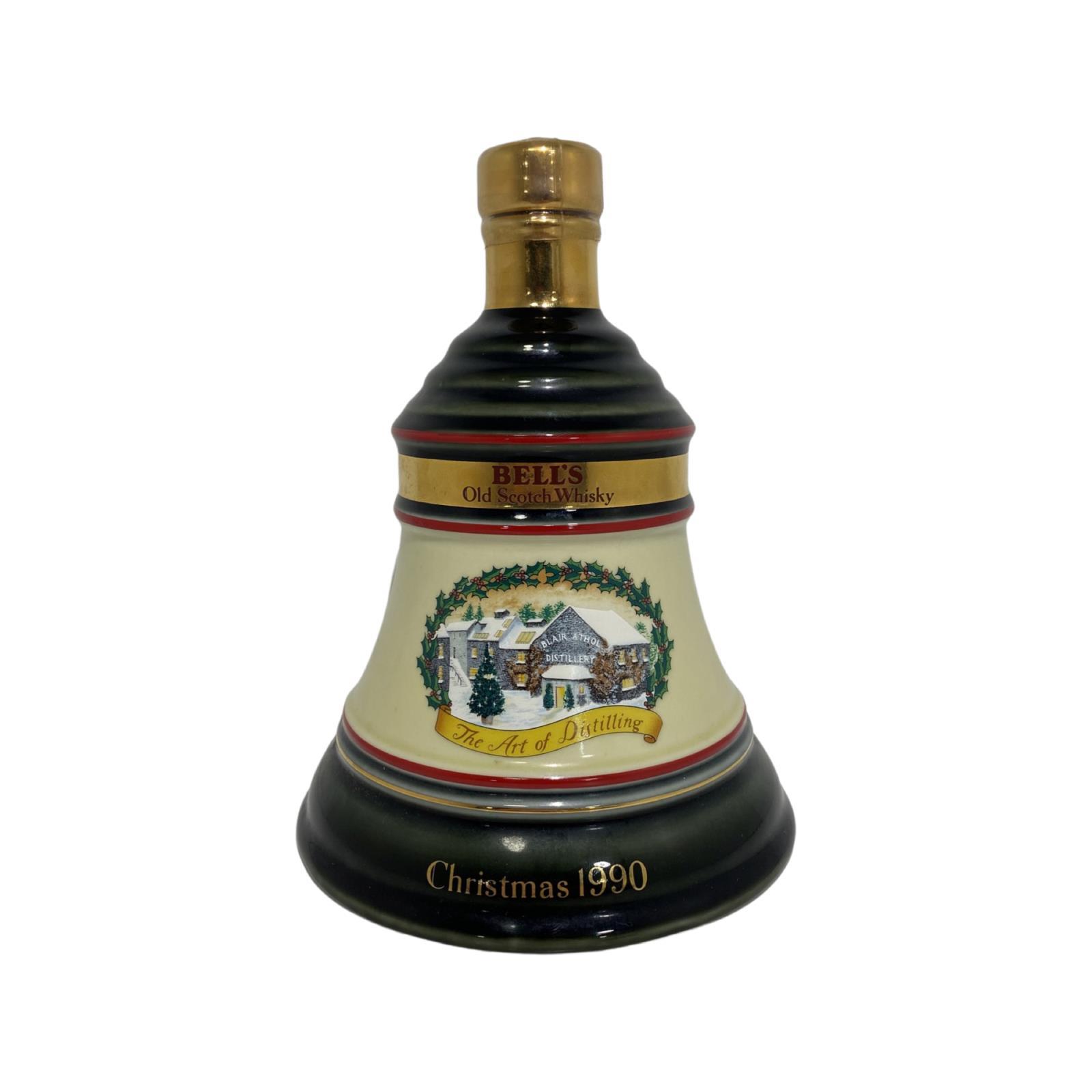 Its unfortunate that these bottles have been discontinued. This is a bottle of Bell’s Old Scotch Whisky presented in a ceramic decanter and released for Christmas 1990. The label depicts ‘The Art of Distilling’ with Blair Athol distillery blanketed in snow.
