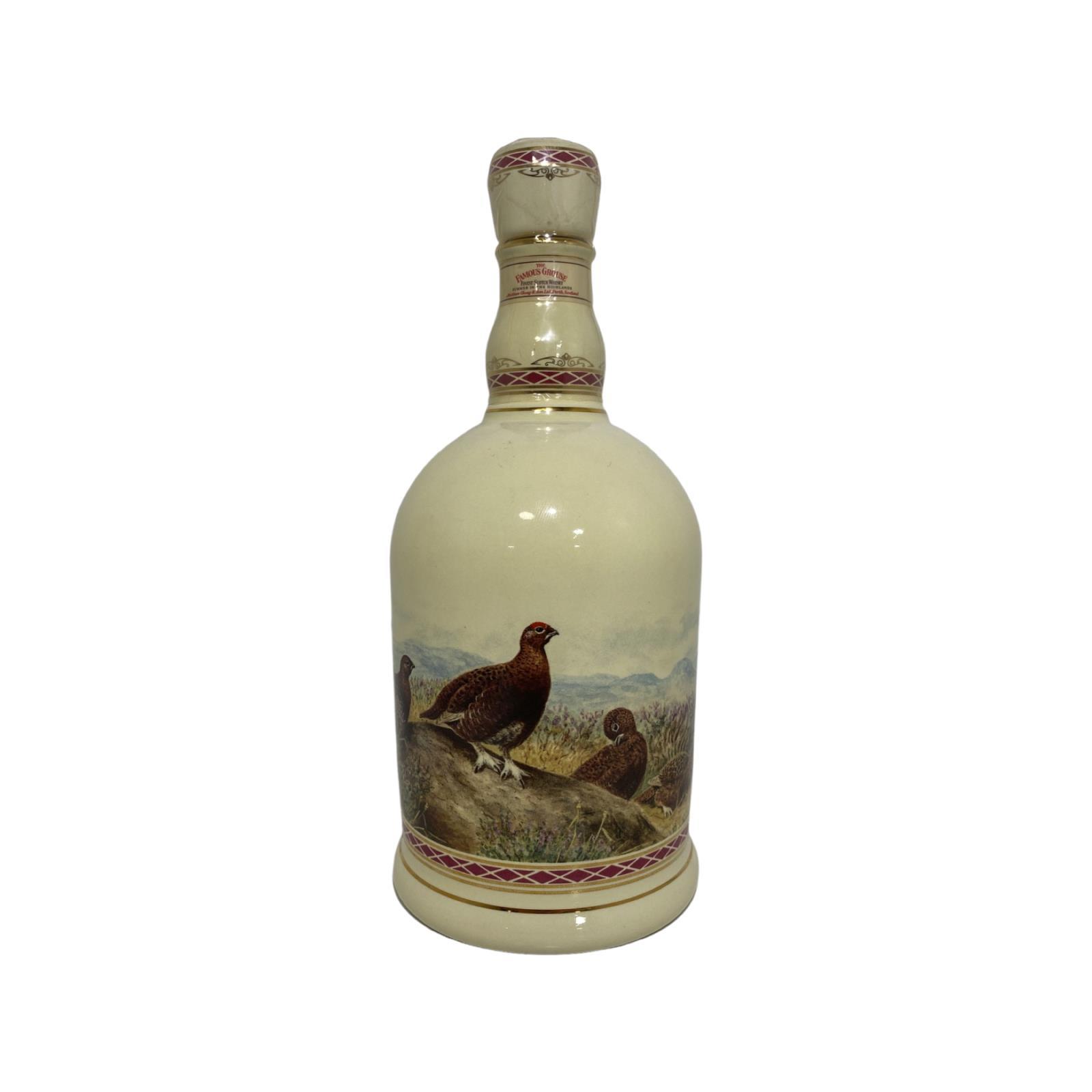 A bottle of Famous Grouse housed within a ceramic 'Highland' decanter. First blended by Matthew Gloag & Son in 1896, as of 2013, it has been the highest selling brand of whisky in Scotland since 1980.