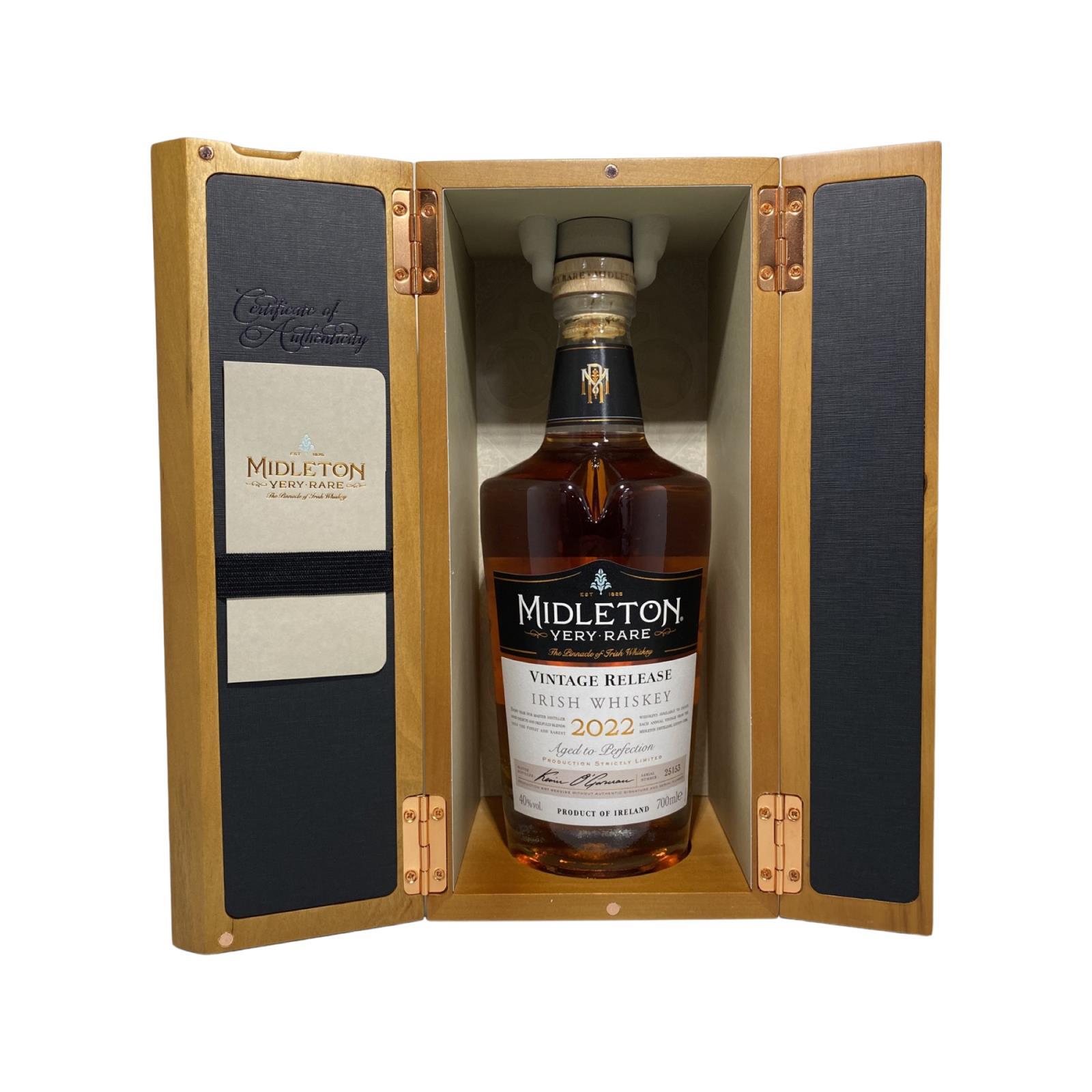 The 2022 edition to Ireland's most premium and beloved whiskey series; Midleton Very Rare. This is the 39th installment and the first release under Kevin O' Gorman appointed Master Distiller of the Midleton Distillery in 2020. Both the bottle and gift box are in very good condition, certificate and distillery invite are also included. Bottle number 25153