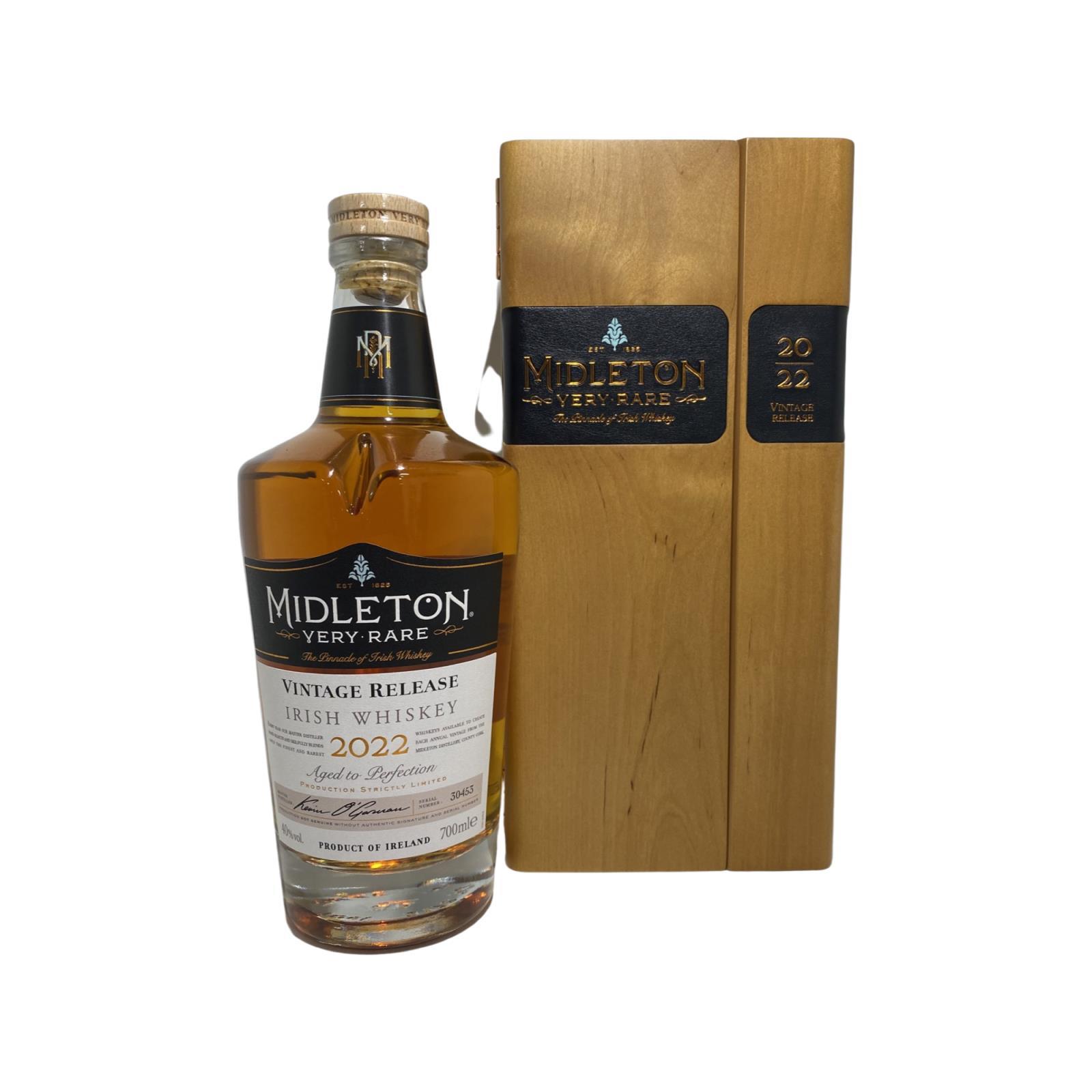 The 2022 edition to Ireland's most premium and beloved whiskey series; Midleton Very Rare. This is the 39th installment and the first release under Kevin O' Gorman appointed Master Distiller of the Midleton Distillery in 2020. Both the bottle and gift box are in very good condition, certificate and distillery invite are also included. Bottle number 30453