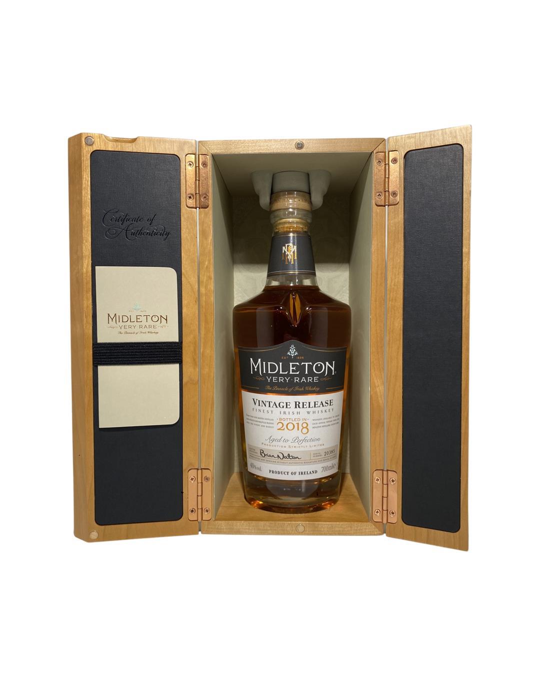 The Midleton Very Rare 2018, is a bottling brought out by the Midleton Distillery in Co. Cork. The ‘Midleton Very Rare’ range was launched in 1984 and a new vintage has been released every year since then. Barry Crockett started off the ‘Midleton Very Rare’ range while he was the Master Distiller of Midleton Distillery, in 2013 Barry Crockett retired from his role of Master Distiller. From 2014 onwards Brian Nation has been creating the ‘Midleton Very Rare’ range, maintaining its role as standard-bearer and pinnacle of Irish Whiskey. The bottle and gift box in great condition also include the cert and distillery invite.