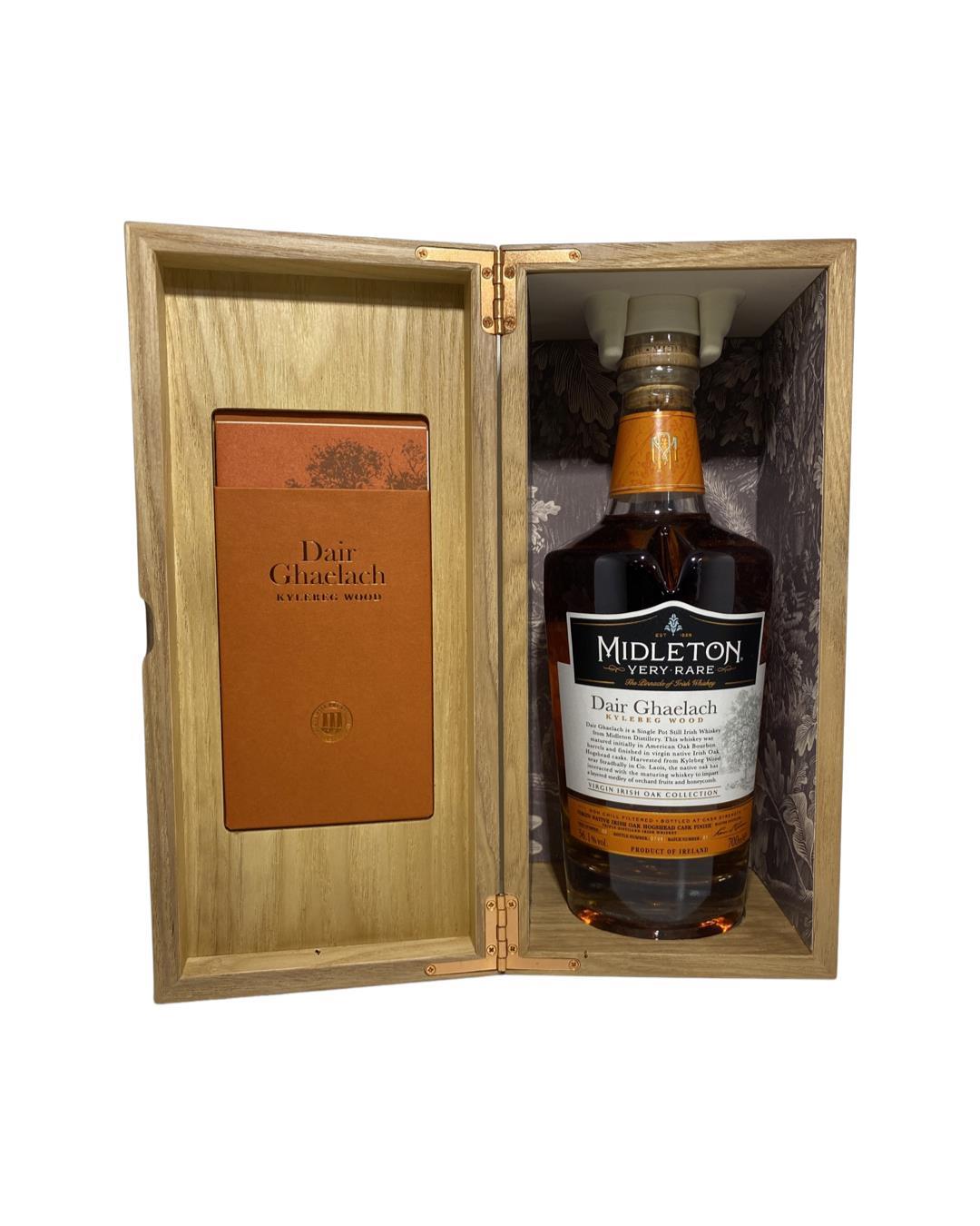 Midleton Very Rare Dair Ghaelach Kylebeg Wood Tree 2 from the Kylebeg Wood set of 7 is a single pot still Irish whiskey from Midleton Distillery. Matured initially in American Oak bourbon barrels and finsihed in virgin native Irish Oak Hogshead casks harvested from Kylebeg Wood, Stradbally Co. Laois. Bottled at cask stregth of 56.1% abv.