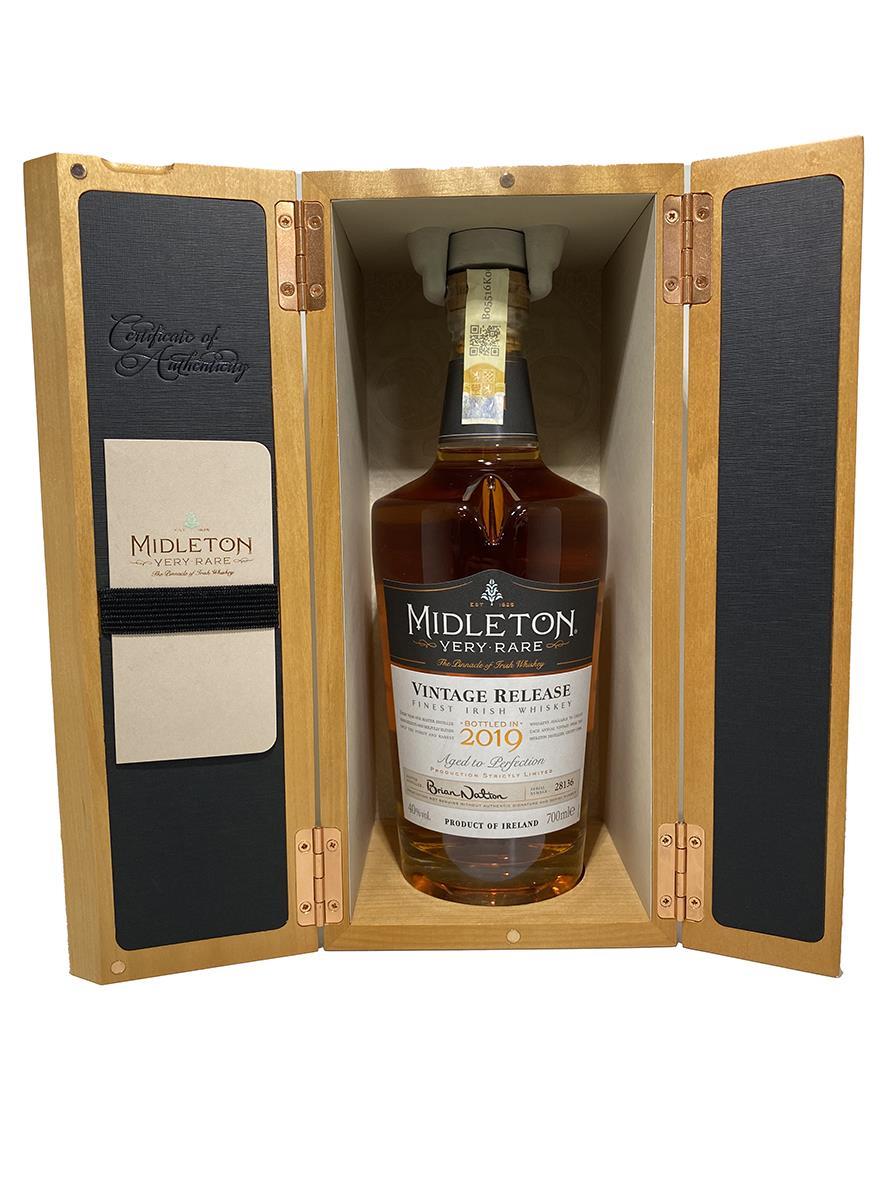 The Midleton Very Rare 2019, is a bottling brought out by the Midleton Distillery in Co. Cork. The ‘Midleton Very Rare’ range was launched in 1984 and a new vintage has been released every year since then. Barry Crockett started off the ‘Midleton Very Rare’ range while he was the Master Distiller of Midleton Distillery, in 2013 Barry Crockett retired from his role of Master Distiller. From 2014 onwards Brian Nation has been creating the ‘Midleton Very Rare’ range, maintaining its role as standard-bearer and pinnacle of Irish Whiskey. The bottle and gift box in great condition also include the cert and distillery invite. Bottle number 28136