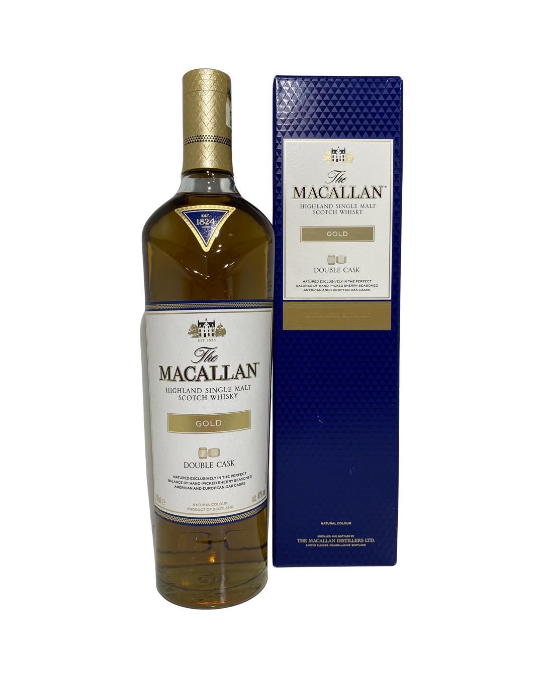 The Macallan Double Cask Gold forms part of their Double Cask range which marries the classic Macallan style and the unmistakable sweetness of American oak.The Macallan Distillery, located in Craigellachie, Scotland, is renowned for its exceptional single malt Scotch whiskies with a strong tradition of maturation in quality Sherry casks. A rich history dating back to 1824, Macallan has established itself as a symbol of luxury and craftsmanship.