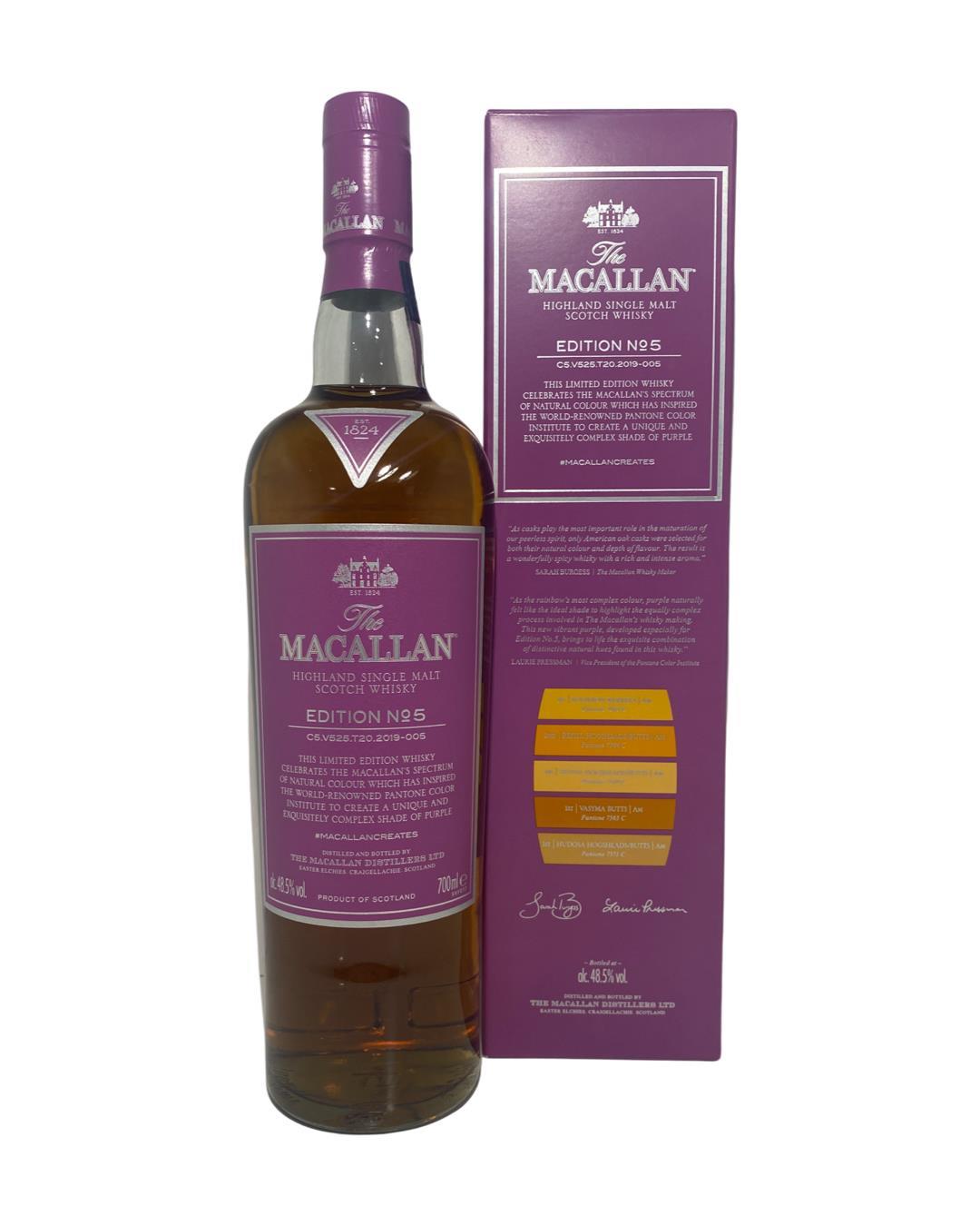 The Macallan Edition No. 5 celebrates The Macallan’s extensive natural colour spectrum and the intricate whisky making process, in partnership with masters at the Pantone Color Institute™ to create a unique shade of purple that features on the packaging. The Macallan Distillery, located in Craigellachie, Scotland, is renowned for its exceptional single malt Scotch whiskies with a strong tradition of maturation in quality Sherry casks. A rich history dating back to 1824, Macallan has established itself as a symbol of luxury and craftsmanship. Nestled within the beautiful Speyside region, the distillery's stunning architectural design seamlessly blends with the surrounding landscape. Its unique production process combines traditional methods with cutting-edge technology, resulting in whiskies of unparalleled quality. ‘The Macallan’ stands as a symbol of excellence in the whisky world. Its whiskies are known for their complexity, craftsmanship, and attention to detail. From their core expressions to exclusive releases, Macallan continues to captivate whisky connoisseurs and collectors with its exceptional range of single malt Scotch whiskies.