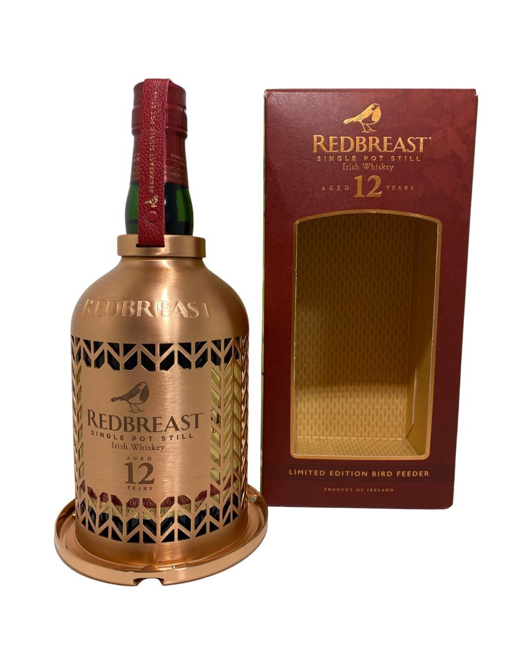 Redbreast 12 boasts the flavour complexity and distinctive qualities of Pot Still whiskey. Matured in a combination of bourbon and sherry casks, the distinctive Redbreast sherry style is a joy to behold in each and every bottle. This is the Limited edition with the birdfeeder cage around the bottle.