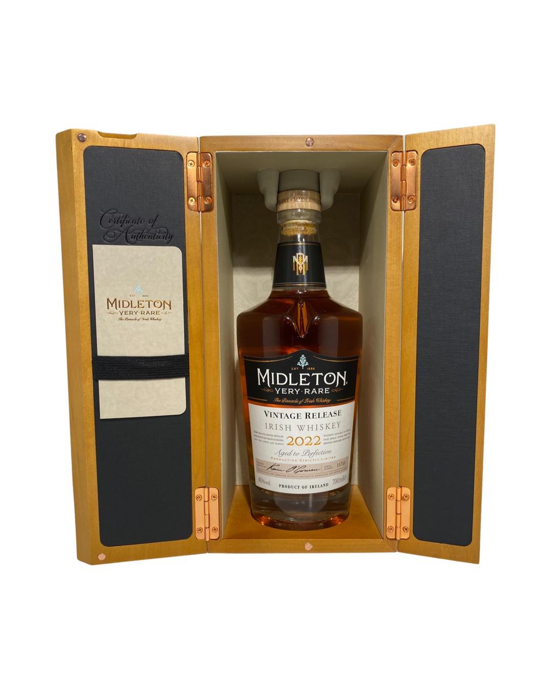 The 2022 edition to Ireland's most premium and beloved whiskey series; Midleton Very Rare. This is the 39th installment and the first release under Kevin O' Gorman appointed Master Distiller of the Midleton Distillery in 2020. Both the bottle and gift box are in very good condition, certificate and distillery invite are also included.