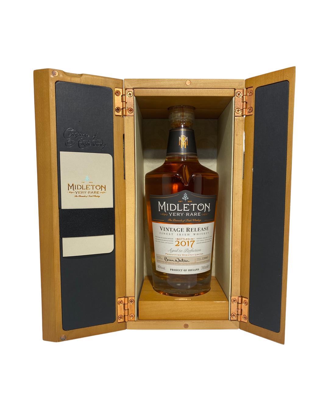 The Midleton Very Rare 2017, is a bottling brought out by the Midleton Distillery in Co. Cork. The ‘Midleton Very Rare’ range was launched in 1984 and a new vintage has been released every year since then. Barry Crockett started off the ‘Midleton Very Rare’ range while he was the Master Distiller of Midleton Distillery, in 2013 Barry Crockett retired from his role of Master Distiller. From 2014 onwards Brian Nation has been creating the ‘Midleton Very Rare’ range, maintaining its role as standard-bearer and pinnacle of Irish Whiskey. The bottle and gift box in great condition also include the cert and distillery invite. Old bottle style and label.The Midleton Very Rare range of whiskeys is a collection of highly regarded Irish whiskeys crafted at the Midleton Distillery in County Cork, Ireland. With a reputation for excellence, these whiskeys are known for their exceptional quality, craftsmanship, and limited availability.