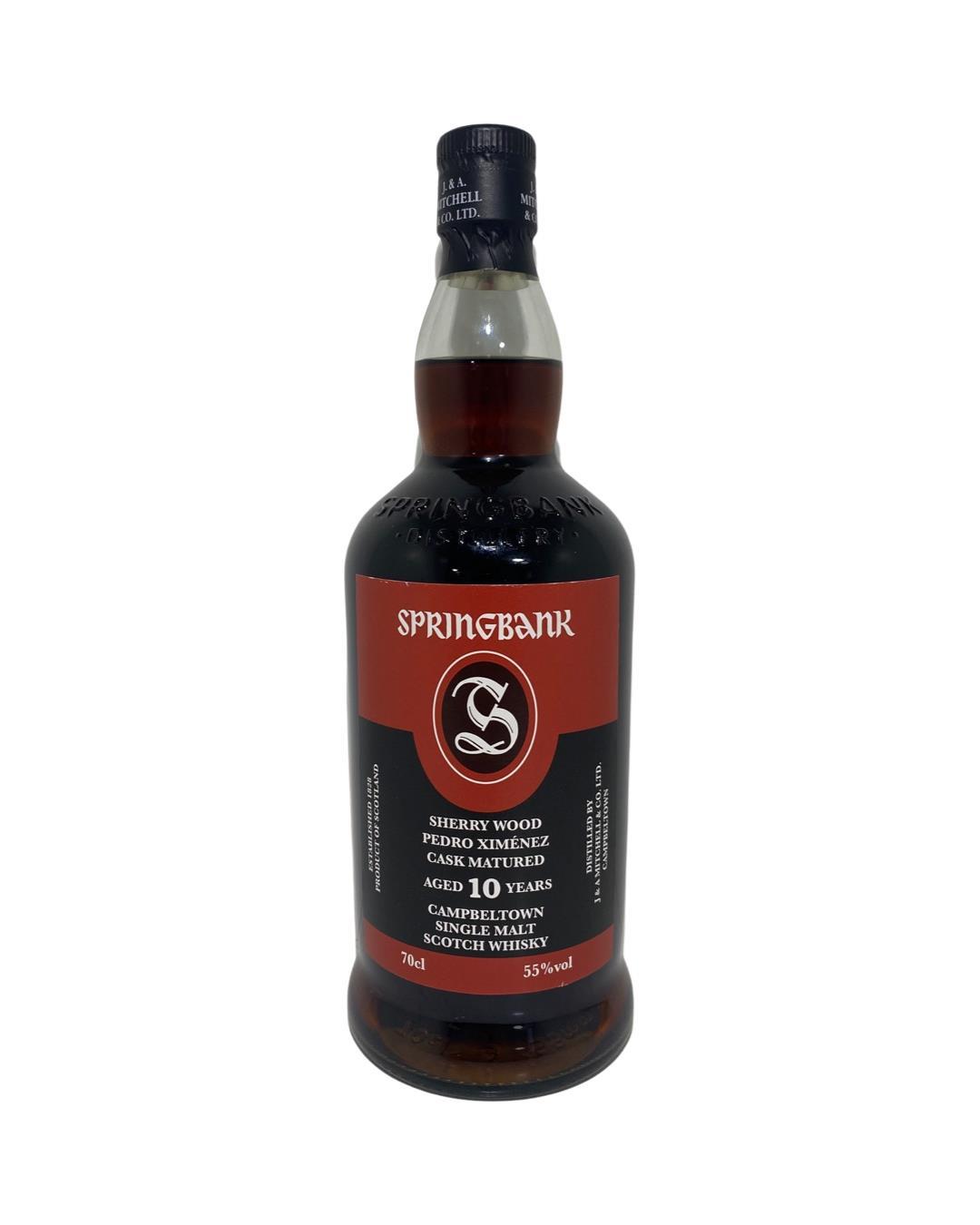 The first of the Springbank Sherry Wood series. This 10-year-old Campbeltown single malt initially matured for 7 years in first fill bourbon casks, before being aged for another 3 years in Spanish oak Pedro Ximénez sherry casks. The Springbank character married with the sweet, rich PX influence, bottled at cask strength, non-chill filtered and with no added colour. A very sought after expression from this legendary distillery. Springbank Distillery, located in Campbeltown, Scotland, is a historic and independent distillery renowned for its traditional production methods and high-quality single malt Scotch whiskies. With a history dating back to 1828, Springbank maintains an unparalleled commitment to craftsmanship, conducting every aspect of the whisky-making process on-site, from malting to bottling. Their whiskies exhibit a distinctive character, often showcasing a balance of fruity, malty, and peaty notes. As well as Springbank whisky, the distillery also makes Longrow (double-distilled Peated single malt) and Hazelburn (unpeated triple-distilled single malt). The distillery is highly regarded by whisky enthusiasts worldwide for their authenticity, complexity, and the distillery's unwavering dedication to traditional production techniques. Recent highlights include the revived Local Barley series and some great cask strength offerings.  The first of the Springbank Sherry Wood series. This 10-year-old Campbeltown single malt initially matured for 7 years in first fill bourbon casks, before being aged for another 3 years in Spanish oak Pedro Ximénez sherry casks. The Springbank character married with the sweet, rich PX influence, bottled at cask strength, non-chill filtered and with no added colour. A very sought after expression from this legendary distillery. Springbank Distillery, located in Campbeltown, Scotland, is a historic and independent distillery renowned for its traditional production methods and high-quality single malt Scotch whiskies. With a history dating back to 1828, Springbank maintains an unparalleled commitment to craftsmanship, conducting every aspect of the whisky-making process on-site, from malting to bottling. Their whiskies exhibit a distinctive character, often showcasing a balance of fruity, malty, and peaty notes. As well as Springbank whisky, the distillery also makes Longrow (double-distilled Peated single malt) and Hazelburn (unpeated triple-distilled single malt). The distillery is highly regarded by whisky enthusiasts worldwide for their authenticity, complexity, and the distillery's unwavering dedication to traditional production techniques. Recent highlights include the revived Local Barley series and some great cask strength offerings.