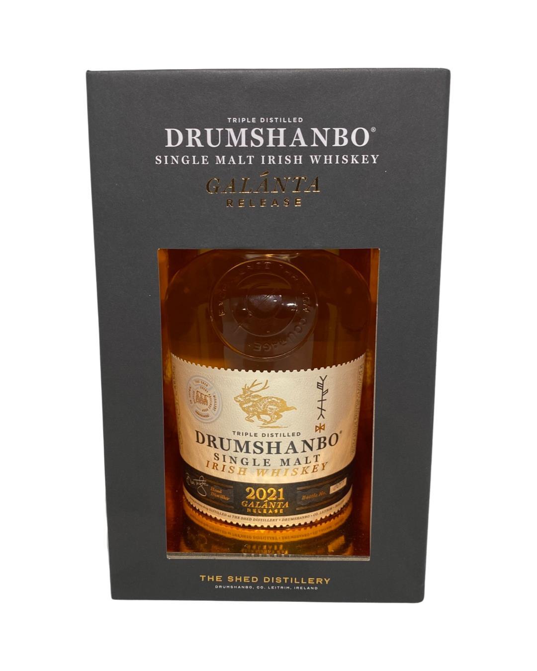 Drumshanbo Single Malt Galanta is a limited annual vintage whiskey. Every precious drop is distilled by Brian Taft & hand bottles at The Shed Distillery of PJ Rigney. Hand-selected by Master Blender Brian Taft , it has matured in Single Use Kentucky Bourbon casks and boasts an intriguing balance of vanilla and wood spice.